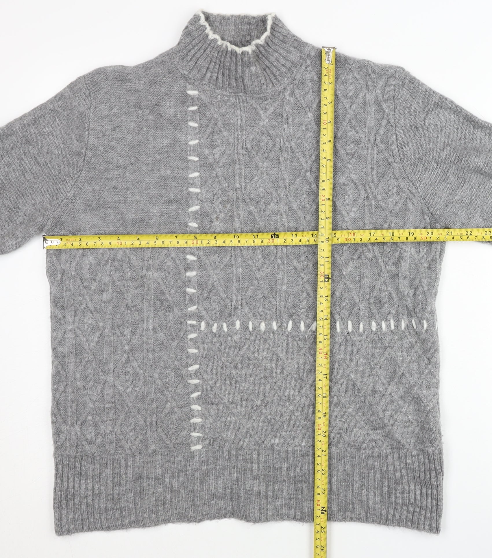 Women’s Grey Cable Knit Jumper Size 12 Mock Neck Pullover