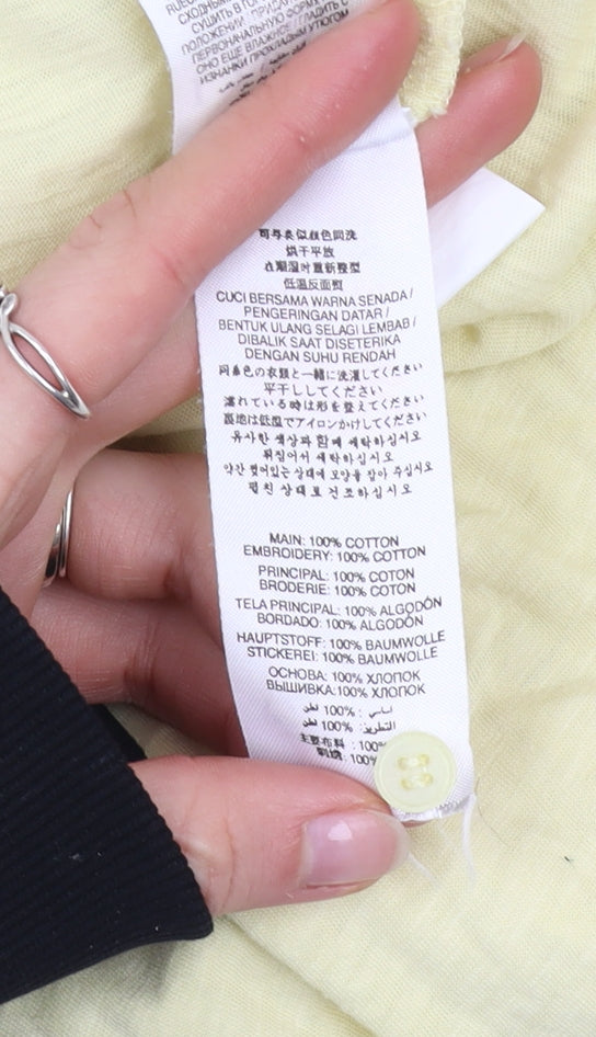 Women Yellow Embroidered Cotton Tunic Blouse Size 16