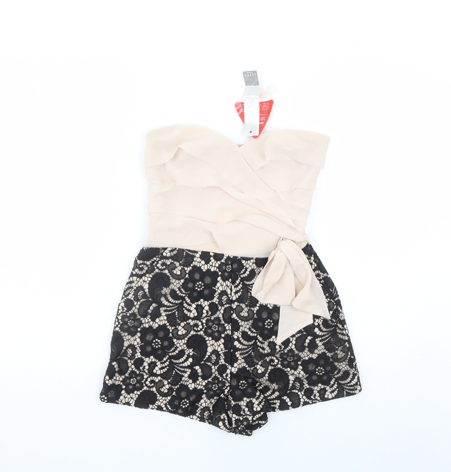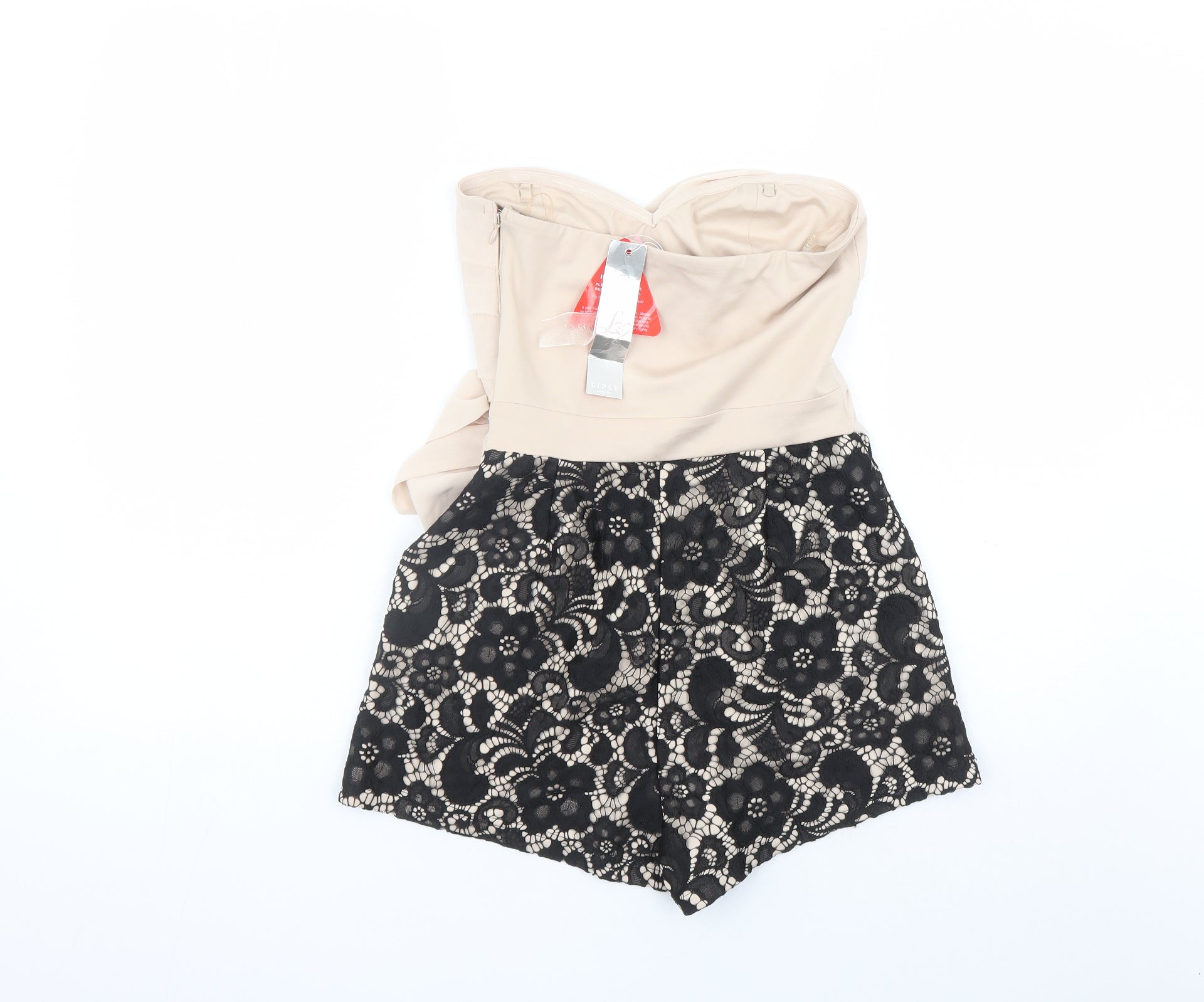 Womens Beige Flecked Polyester Playsuit One-Piece Size 10 Zip