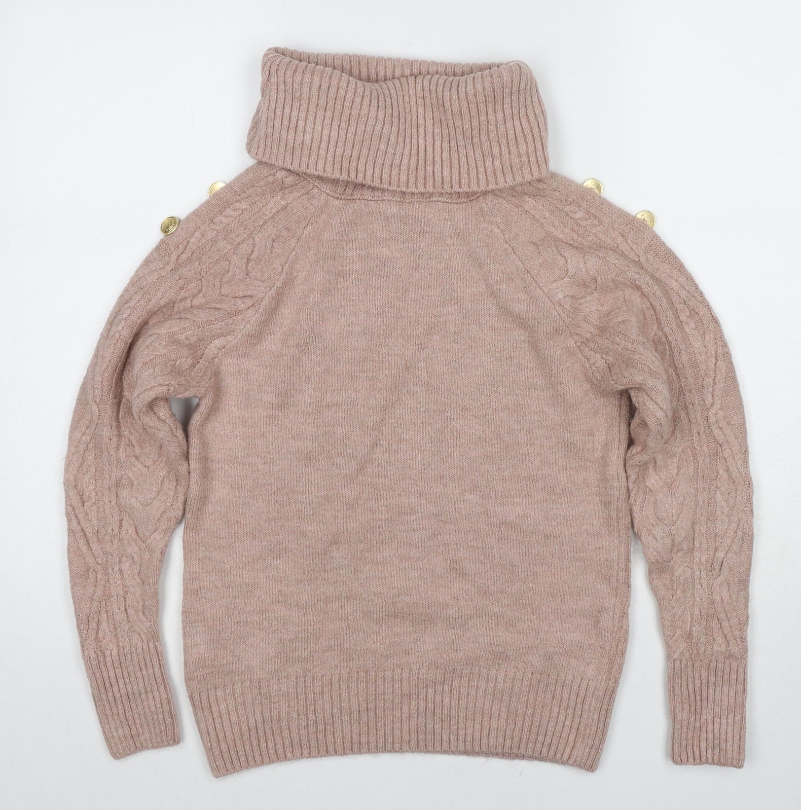 Womens Beige Roll Neck Acrylic Pullover Jumper Size 8