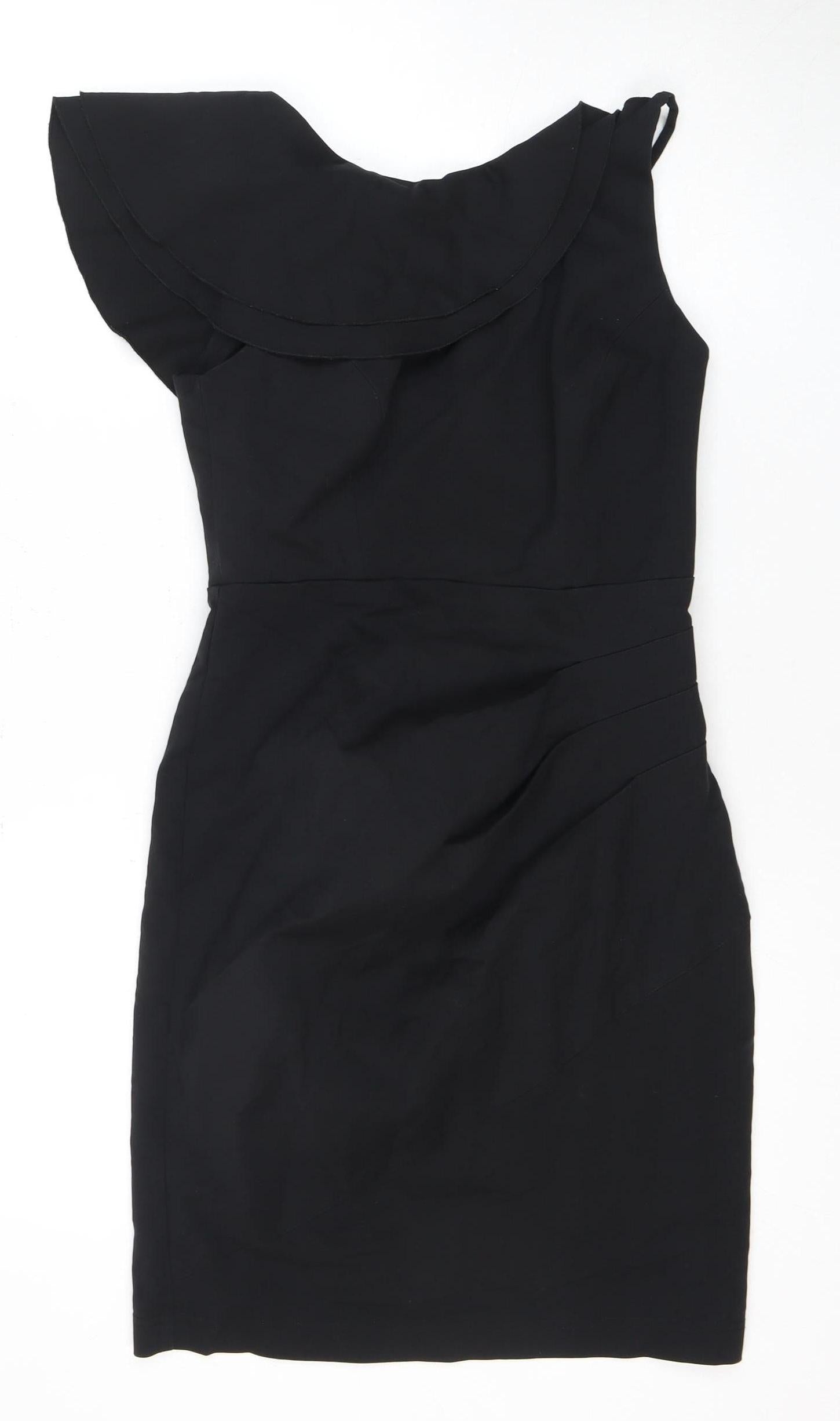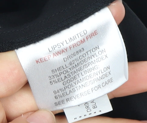 Step out in style with this stunning black one-shoulder sheath dress by Lipsy. Perfect for making a statement, this dress is crafted from a luxurious blend of cotton, nylon, and elastane, providing both comfort and a flattering fit. Its sleek silhouette hugs your curves beautifully, making it an ideal choice for special occasions or evenings out. The dress, tailored for women, is designed in a timeless style, ensuring it never goes out of fashion. With its chic zipper closure and elegant sleeveless design, this dress offers a contemporary take on classic fashion. The understated black colour allows for versatile styling — pair it with bold accessories or keep it minimalistic. As it comes new with tags, you can be assured of its pristine condition. Whether you're attending a cocktail party or an evening event, this sheath dress is sure to turn heads.