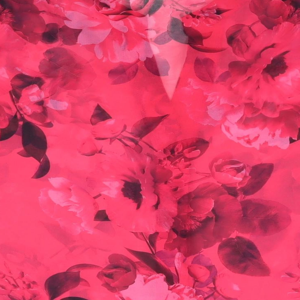 Womens Pink Floral Polyester Basic Button-Up Size 14 Round Neck