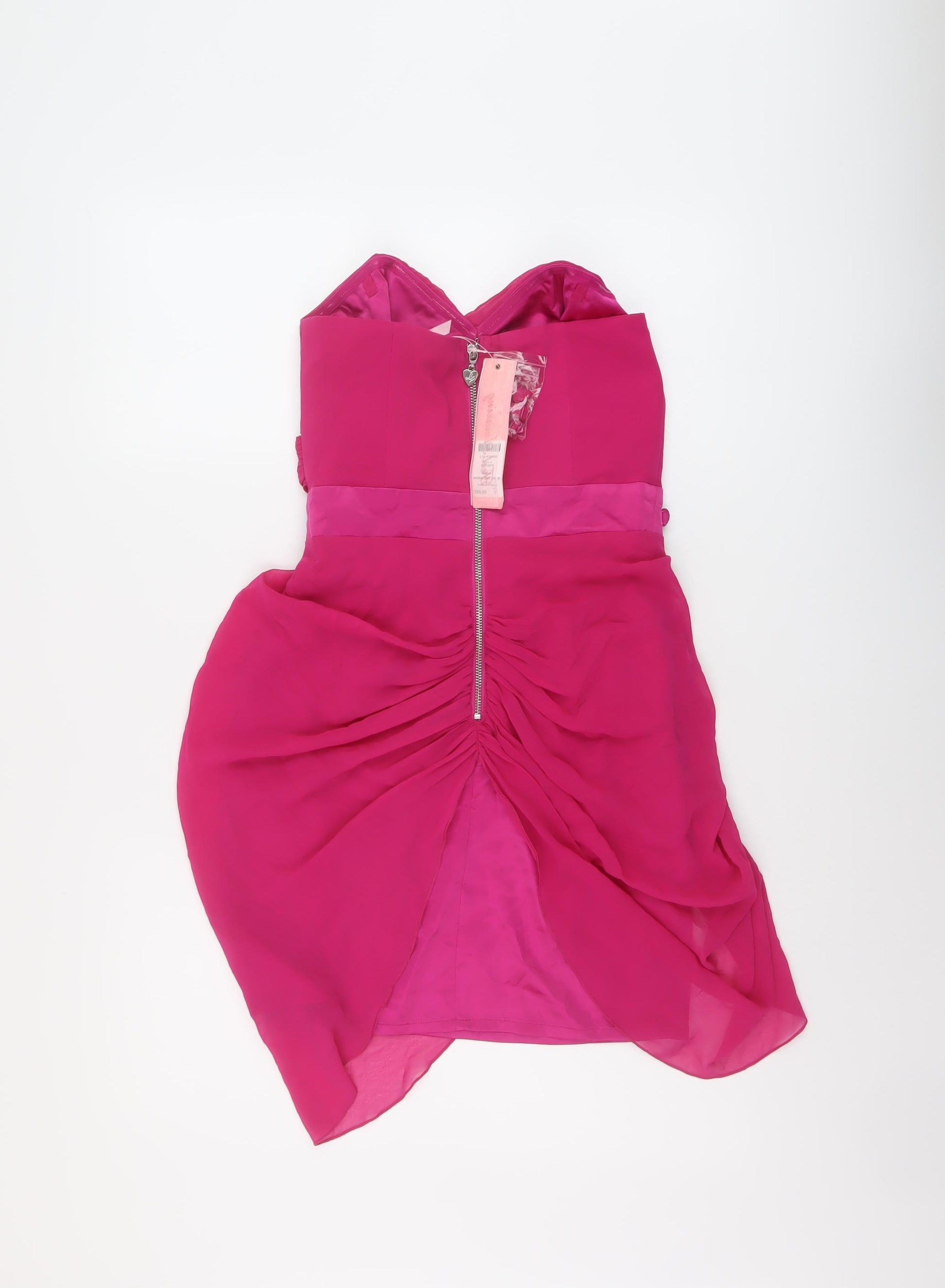 PRETTYLITTLETHING Womens Pink Geometric Polyester Bodycon Size 8 V-Neck Zip