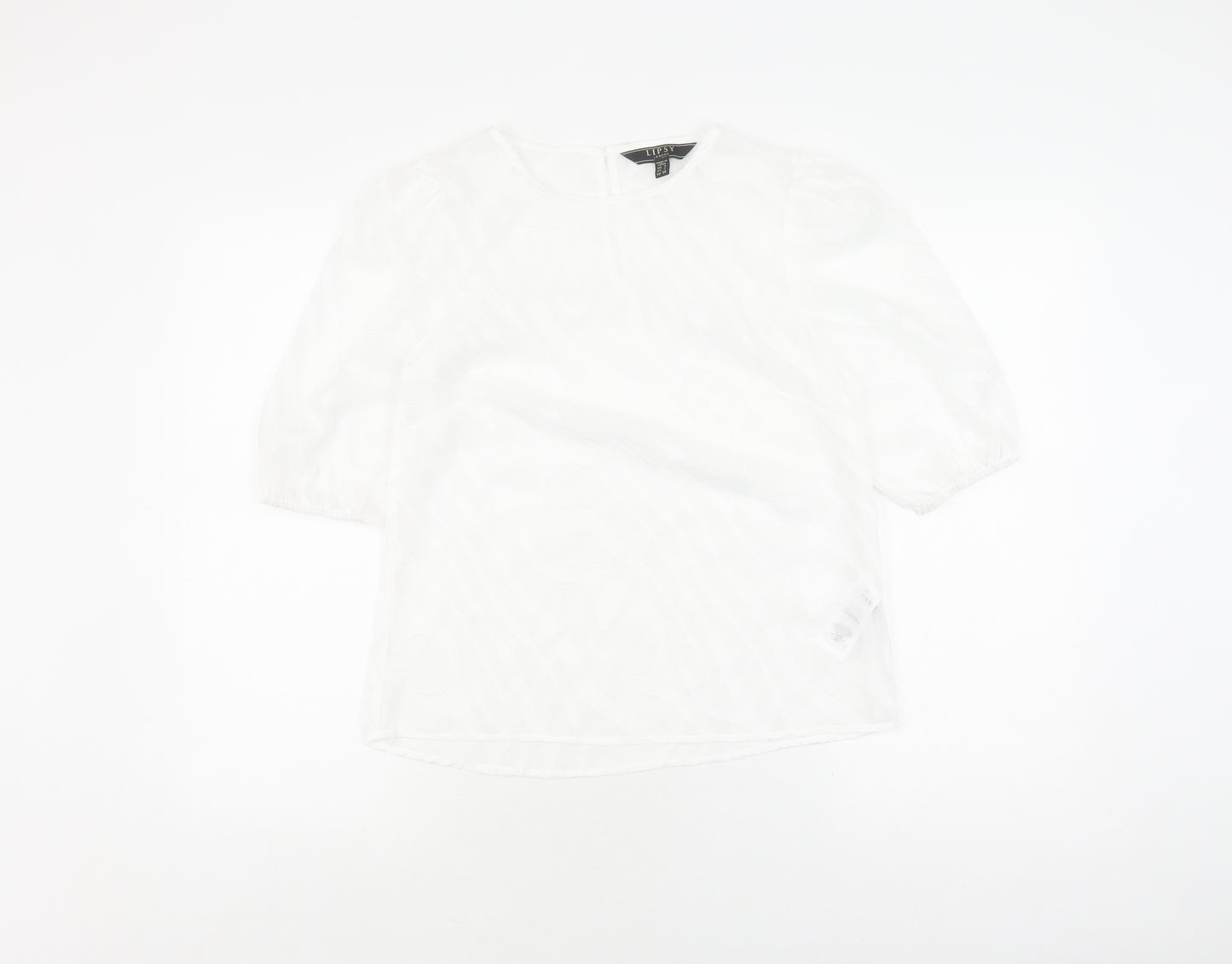 This elegant Lipsy blouse is a perfect addition to the modern woman's wardrobe. Crafted from high-quality polyester, it ensures durability and comfort throughout the day. Designed for women, this blouse is a versatile piece that can elevate your casual outfits. Featuring a classic crew neck, it gives a sophisticated look ideal for various occasions. The solid white colour adds a touch of elegance, making it easy to pair with any outfit. Despite its stylish appearance, the blouse remains machine washable, offering convenience in garment care. In excellent condition with no visible flaws, this blouse offers both style and practicality at a very reasonable price. The simplicity of its design allows the blouse to fit seamlessly into any wardrobe, making it an essential piece for any fashion-forward woman. Whether dressing up for a casual day out or looking for a base piece for a layered look, this Lipsy blouse is a reliable and chic option.