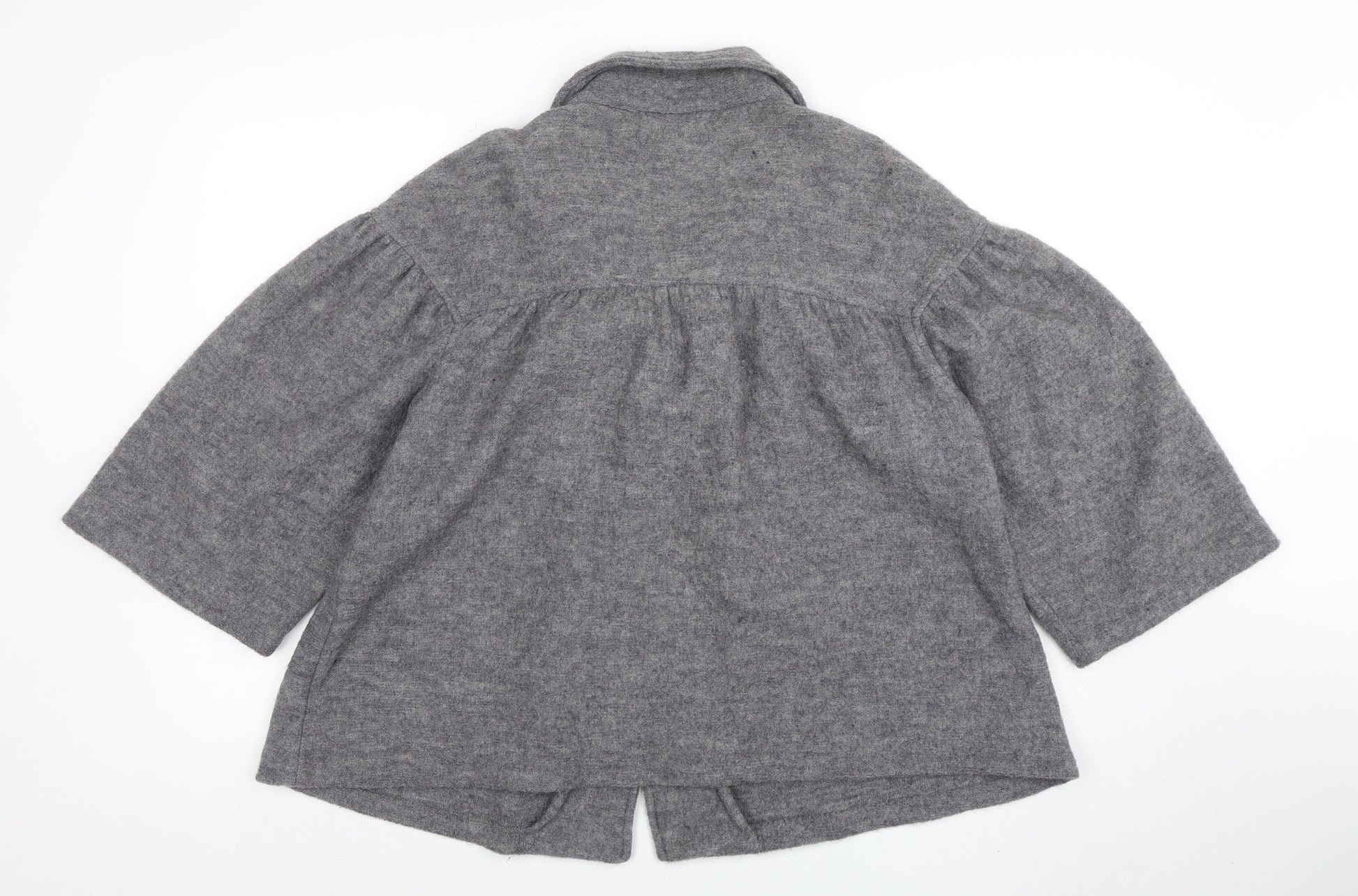 Step into timeless elegance with this Lisa International Women’s Grey Wool Jacket in size M. Expertly crafted from 100% boiled wool, this short-length coat offers a beautifully soft yet durable finish, making it perfect for seasonal layering. The medium weight wool fabric provides warmth without bulk, making it an ideal choice for the autumn and winter months. Its understated single-breasted design features a single large button closure and an elegantly draped shawl collar that complements the gently gathered shoulder seams to create a feminine, classic silhouette. The 3/4 length sleeves add a touch of sophistication while offering versatility to pair with long sleeve tops or dresses underneath. The heather grey tone ensures easy styling, harmonising beautifully with both casual and smart outfits, from tailored trousers to jeans or skirts. Designed for the modern woman who values style and comfort, this lovely jacket brings subtle luxury to day-to-day wear or can elevate your workwear effortlessly. The simple yet refined detailing makes it a flattering addition to any wardrobe. The garment remains in excellent pre-loved condition, showing only light signs of wear with no stains or damage visible, retaining its shape and appeal. Crafted with quality wool that is best maintained through dry cleaning, this jacket ensures lasting softness and warmth throughout the seasons. Whether you’re heading out for a winter brunch, meeting friends, or want a cosy layer for your commute, this Lisa International piece delivers effortless chic. A timeless classic that suits both casual and professional settings, offering comfort, warmth, and understated elegance – a must-have for anyone who adores quality craftsmanship and practical sophistication.