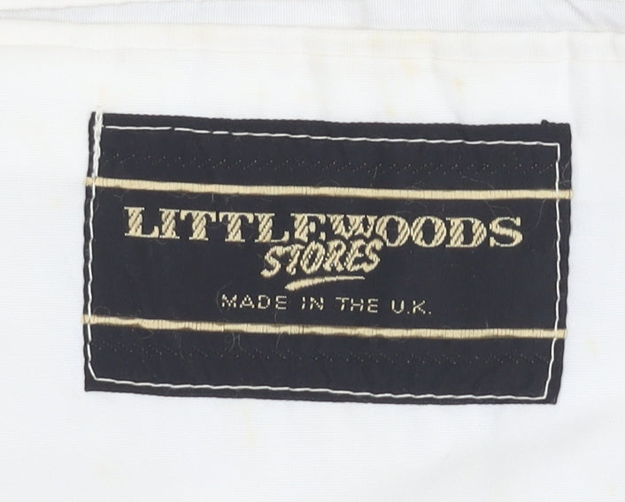 Step up your smart-casual wardrobe with this refined beige blazer from Littlewoods Stores, made in the UK with a luxurious blend of materials. Crafted from 55% polyester, 35% wool, and 10% other fibres, this high-quality jacket offers both comfort and structure, ensuring long-lasting wear and a timeless silhouette. The blazer features a regular fit cut, lending a sharp yet relaxed look ideal for formal occasions, business meetings, weddings or refined evening events. Its single-breasted design with a two-button front closure provides a flattering outline, while the notch lapel adds a touch of traditional elegance. Fully lined in 100% polyester, the interior ensures smooth layering over shirts or knitwear. Classic detailing such as double-vented rear, two external flap pockets and inner pockets enhance practicality without compromising style. The textured beige tweed-like fabric makes this blazer perfect for warmer seasons like spring and summer, keeping your outfit light and sophisticated. Given the superb condition and construction, this vintage Littlewoods Stores piece demonstrates quality tailoring that endures through time. Ideal for pairing with tailored trousers or dark denim, it delivers versatile styling options for the modern man. Whether you’re dressing up for a special occasion or refining your everyday office wardrobe, this jacket offers a perfect balance of comfort, durability, and elegance. Own a piece of true British vintage craftsmanship with this smart beige wool-blend blazer.