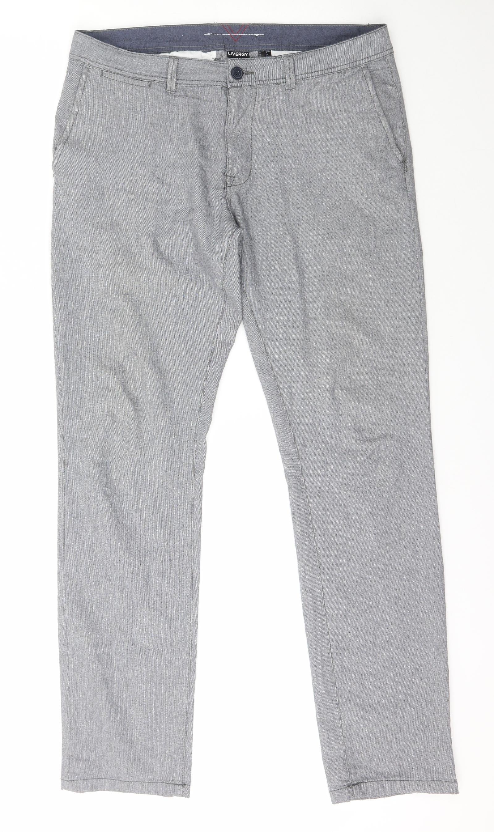 Mens Grey Cotton Chino Trousers Size 34 L32 in Regular