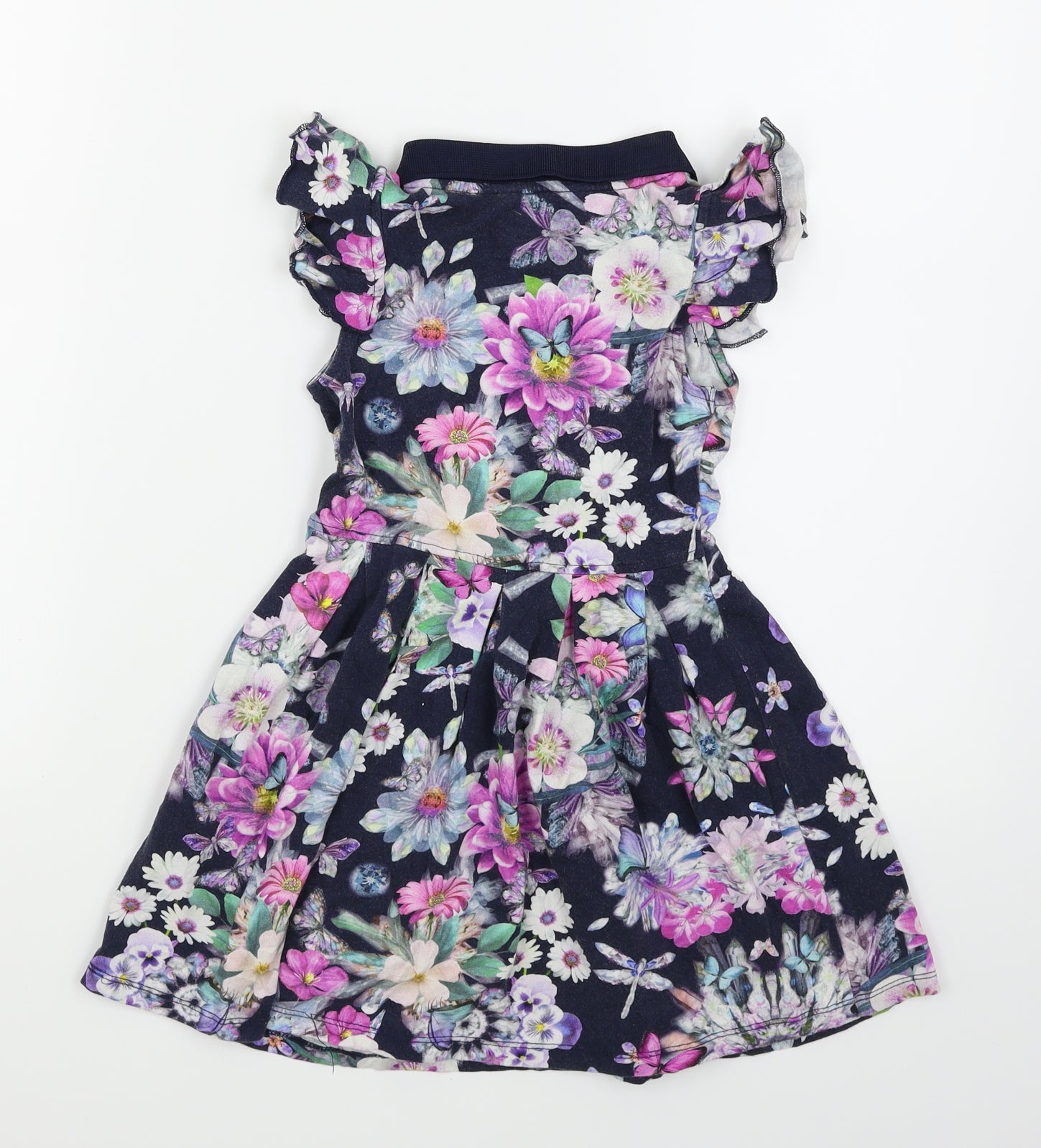 Girls Blue Floral Skater Dress Size 3-4 Years