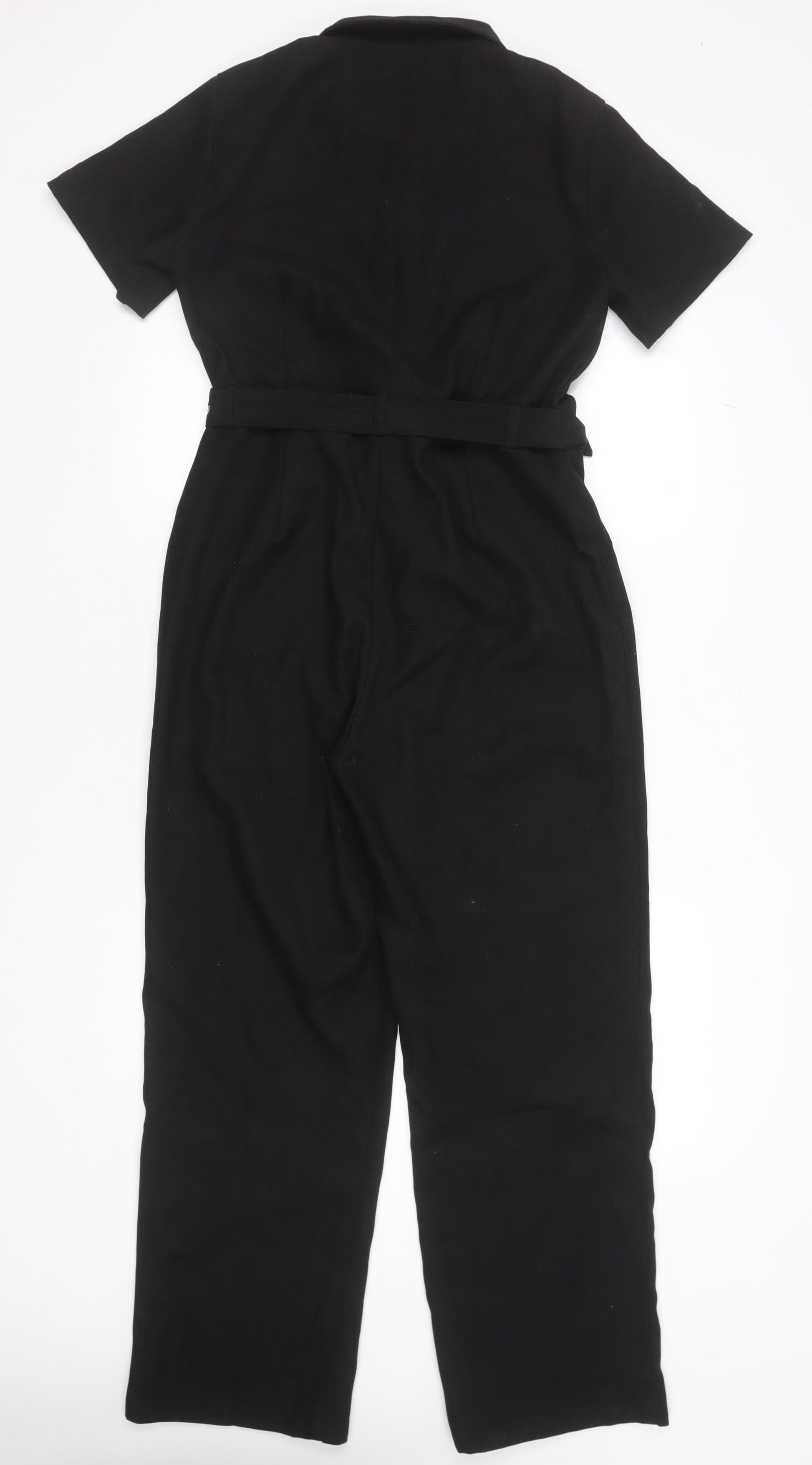Women's Black Short Sleeve Collared Belted Jumpsuit UK 12