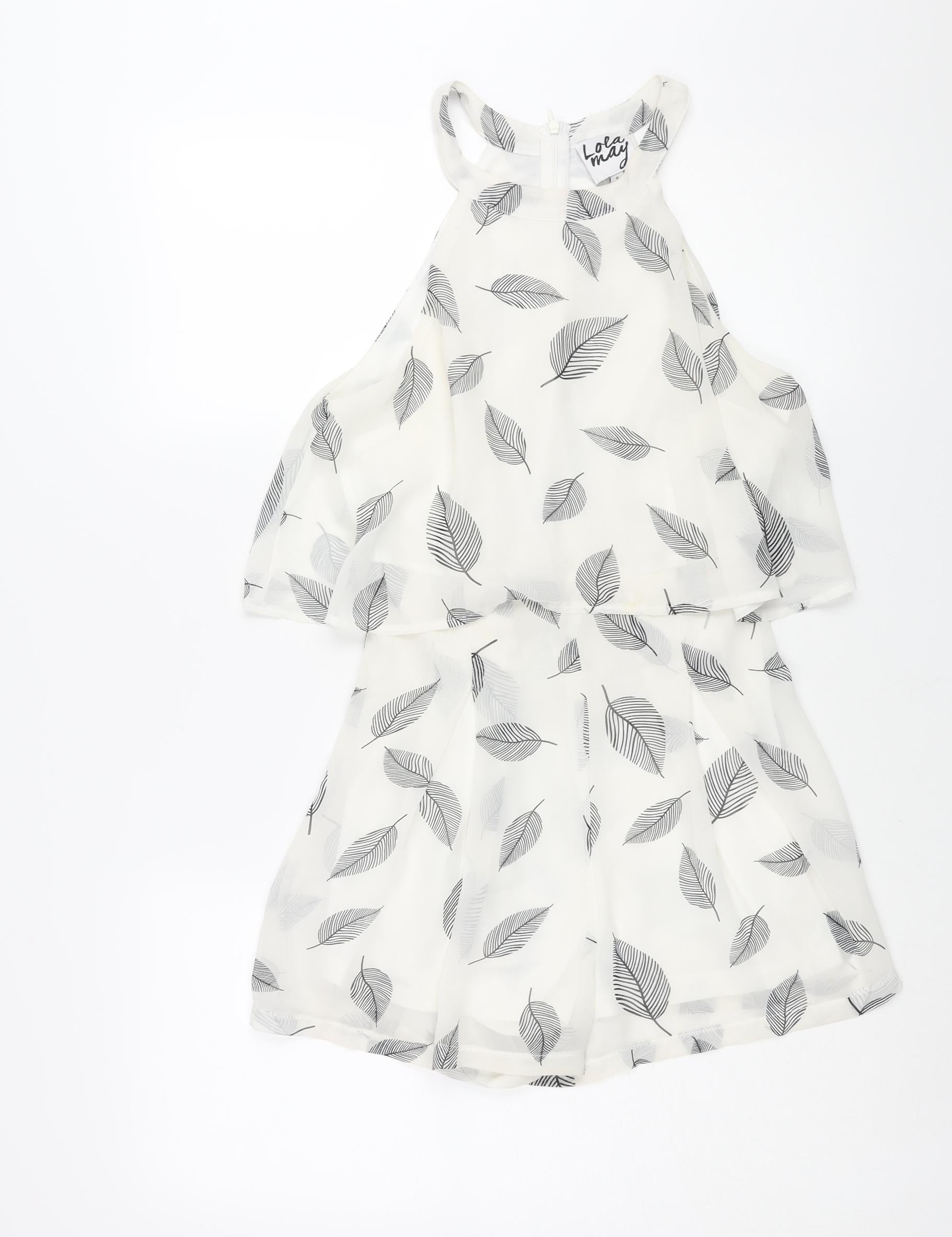 Womens White Geometric Polyester Playsuit One-Piece Size 8 Zip - Leaf Print