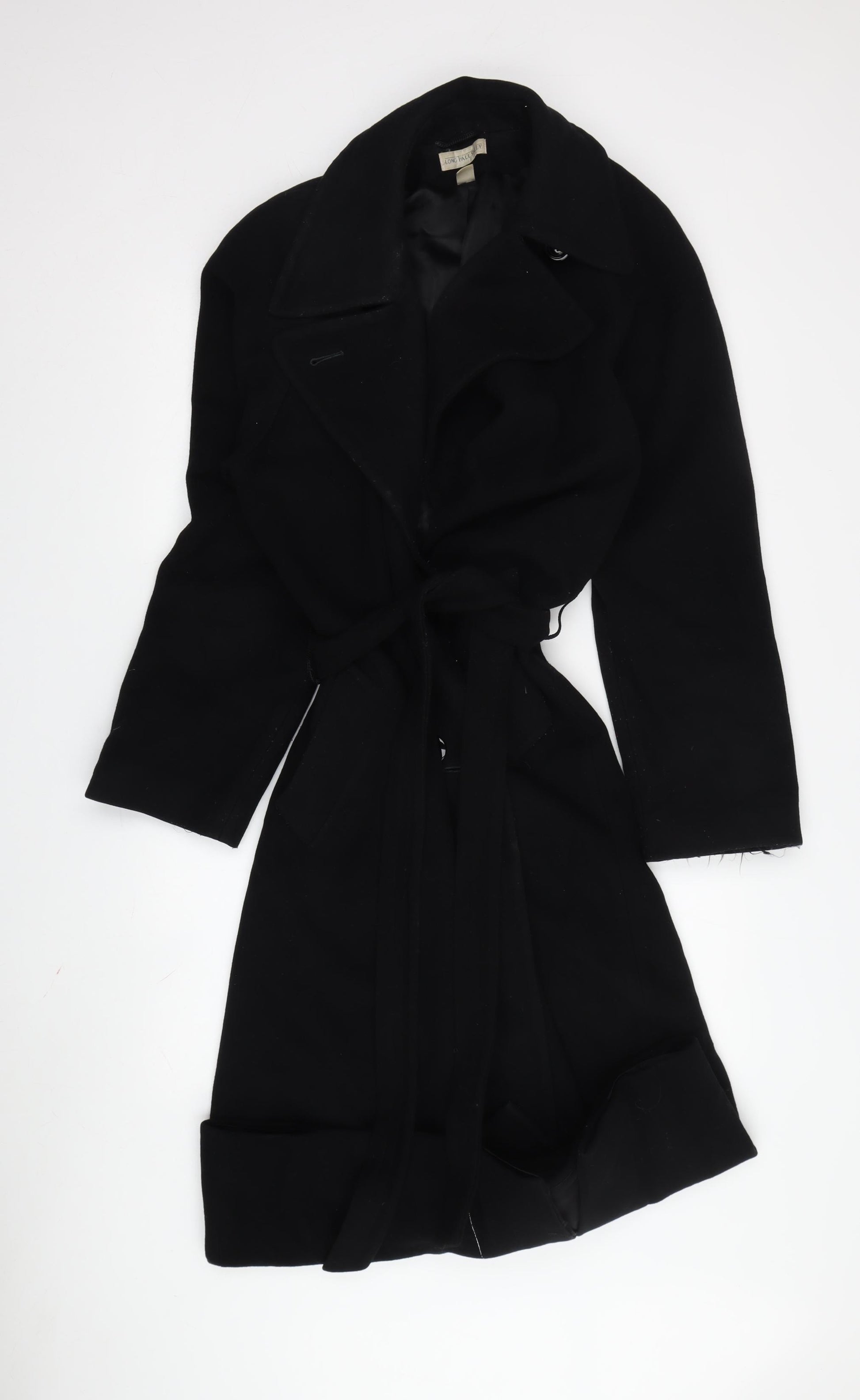 Elevate your outerwear collection with this elegant Long Tall Sally trench coat. Designed for women who appreciate timeless fashion, this black wool coat combines style and comfort. Perfect for autumn and winter, the coat features a chic belted waist and button accents, giving it a sophisticated touch. Its long length and regular fit make it ideal for business and casual occasions, whether you're heading to the office or enjoying a leisurely day out. Crafted from 100% wool, this trench coat ensures warmth and durability, offering a luxurious feel that you’ll love wearing season after season. The coat is in excellent condition, though it does show slight wear, which adds to its character. With a sleek design and easy button closure, this coat promises both style and practicality. It is perfect for those who prefer a minimalist look with a dash of elegance. This piece defines understated sophistication, making it a must-have addition to your wardrobe. The Long Tall Sally brand is known for catering to tall women, ensuring that this coat offers a comfortable and flattering fit. Make this versatile trench coat a staple in your fashion collection and step out in confidence and style.