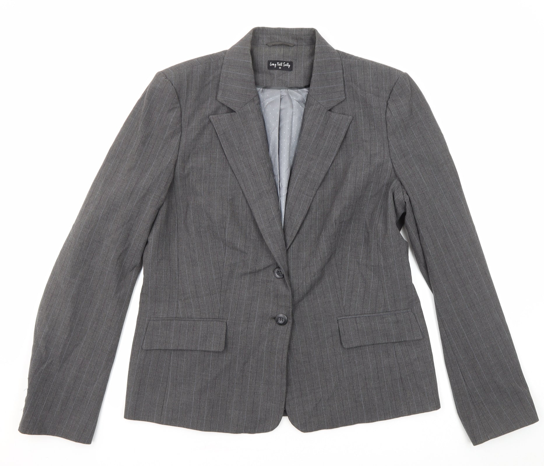 Womens Grey Striped Polyester Jacket Suit Jacket Size 20
