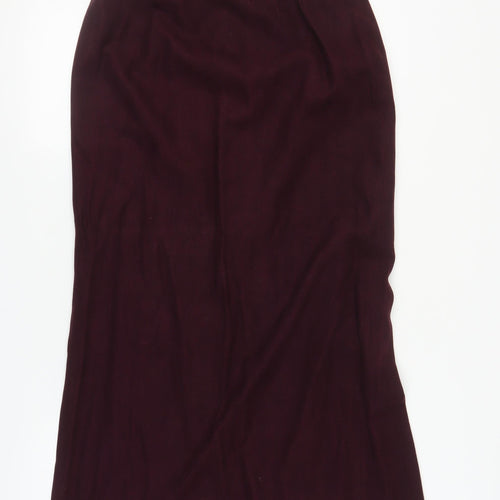 Step out in style with this timeless Long Tall Sally women's pencil skirt. Featuring a rich purple hue, this long skirt adds a sophisticated touch to any wardrobe. Perfect for both business and casual occasions, its sleek design is completed with a mid-rise fit and a subtle slit for ease of movement. Crafted from a comfortable blend of 65% polyester and 35% viscose, this skirt is machine washable, ensuring convenient maintenance. Designed for the autumn and winter seasons, it promises to be a versatile piece in your collection. The simple button closure and no-pattern style provide a clean, modern look, perfect for pairing with a range of tops and accessories. Although not new, it is in excellent condition with no visible damage, making it a smart investment. Whether you're heading to the office or a casual dinner, this elegant Long Tall Sally skirt is sure to become a staple in your wardrobe.