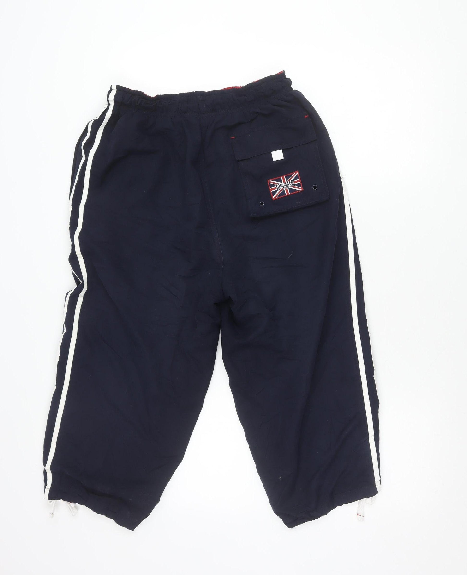 Elevate your sportswear collection with these high-quality Lonsdale men's track pants in classic navy blue. Designed for active lifestyles, these regular-fit track trousers combine functionality with style, making them ideal for running, jogging, gym workouts, or casual walks. Crafted from breathable woven 100% polyester, they offer lightweight comfort while remaining durable for daily wear. The track pants feature an elasticated waist with a drawstring closure, ensuring a secure and adjustable fit. Side stripes along the legs add a sporty touch, while convenient pockets enhance practicality. The straight leg style promotes unrestricted movement, and the versatile no-pattern design means these trousers can pair easily with your favourite sports tops, hoodies, or jackets. These Lonsdale pants are machine washable for easy care, making them a reliable addition to your activewear rotation. Perfect for spring, summer, and autumn activities, they can be layered over base garments when the temperature dips. Their design focuses on comfort and ease, making them suitable for warm-ups, training sessions, or casual outdoor leisure. With minimal signs of light wear and no damage, they are in excellent pre-owned condition, offering great value. Whether you’re heading to the gym, hitting the track, or just relaxing at home, these trousers deliver the performance you need with the style you want. Don’t miss the opportunity to add these dependable, stylish Lonsdale track pants to your sportswear collection.