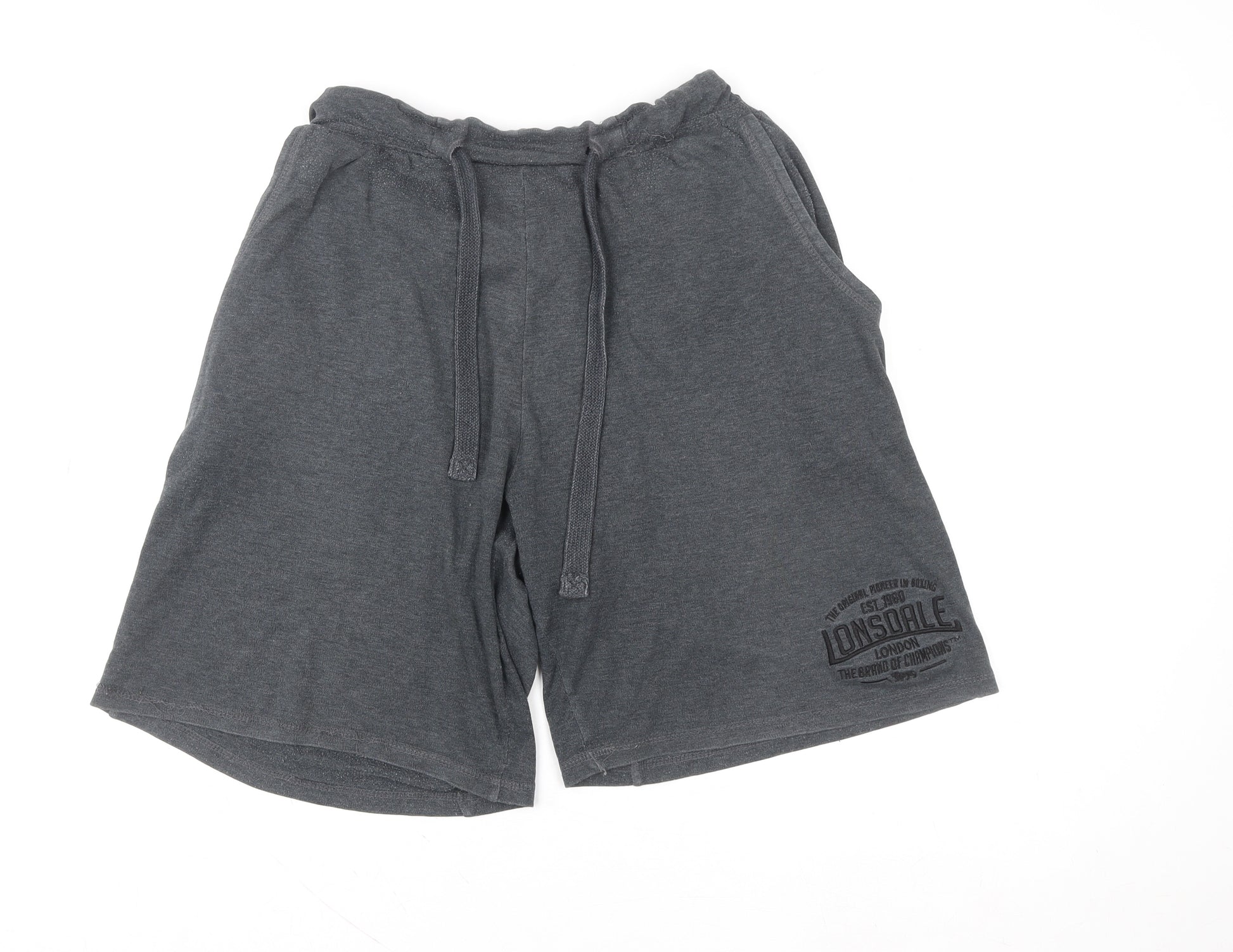 Refresh your workout wardrobe with these Lonsdale Men’s Grey Athletic Shorts, designed to deliver outstanding comfort and performance during any activity. Crafted from soft and lightweight 100% polyester jersey fabric, these shorts offer a breathable and quick-drying finish that keeps you cool while training. The smooth elasticated waistband with adjustable drawstring ensures a secure and comfortable fit, while the regular cut promotes ease of movement whether you're lifting, running, or boxing. Featuring the classic Lonsdale London logo, these shorts carry the heritage of one of Britain’s most iconic sports brands. The practical side pockets allow easy storage for essentials like keys or gym passes, ensuring function without sacrificing style. The versatile grey shade makes them an ideal choice not only for workouts but also for relaxed, casual wear. Perfect for the gym, running, boxing, or everyday lounging, these athletic shorts are a wardrobe essential for anyone serious about both comfort and performance. Machine washable for easy care and ready to wear season after season, they deliver reliability and style in one. These pre-owned shorts remain in very good condition with minimal signs of use, reflecting quality construction and durability. Suitable for spring, summer and autumn wear, they’re simple yet performance-driven – ideal for both active training and downtime. A great addition to every active man’s collection, offering value, comfort, and iconic sportswear style. Take on your next training session in confidence with Lonsdale’s trusted craftsmanship and timeless appeal.