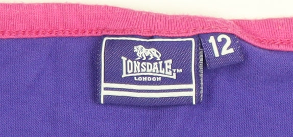 Step out in classic sporty style with this women’s purple Lonsdale London T-shirt. Crafted from a soft, breathable jersey blend of polyester and viscose, this lightweight tee ensures comfort and durability for daily wear. The short sleeve design paired with a crew neckline provides a relaxed yet flattering fit, perfect for layering or wearing on its own during warmer seasons. Featuring the iconic Lonsdale London logo across the front in a contrasting pink graphic, it adds a pop of colour and athletic flair to your wardrobe. The casual and versatile cut makes it ideal for off-duty days, light workouts, or weekend outings. Designed in a regular fit, this T-shirt sits comfortably over jeans, leggings, or shorts, giving it a stylish yet effortless appeal. The material’s soft texture, coupled with easy-care machine washability, ensures this piece remains a wardrobe favourite. Its simple pullover style embodies the sporty, everyday aesthetic that Lonsdale is known for — ideal for women who value both comfort and classic design. With its vivid purple tone, subtle contrast trim in pink, and lightweight construction, it’s a perfect choice for spring and summer wear. In very good pre-owned condition, this top shows only minimal signs of previous use, maintaining excellent fabric quality and logo clarity. A great addition to any casual collection, offering both functionality and style in one comfortable piece. Whether paired with joggers for a relaxed look or jeans for a day out, this Lonsdale women’s T-shirt in size 12 delivers timeless athletic charm that fits effortlessly into an active lifestyle.
