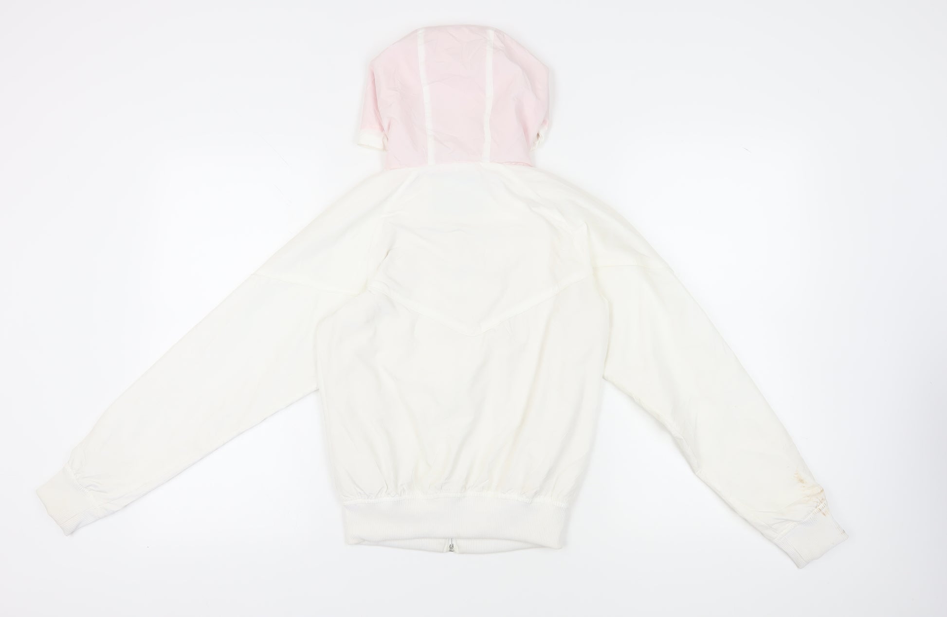 Elevate your casual wardrobe with this stylish women's jacket from Lonsdale, a hallmark of comfort and durability. This mid-length basic jacket, perfect for the autumn and winter seasons, comes in a versatile white. Designed thoughtfully for women, the jacket is crafted primarily from robust polyester, ensuring lasting wear. It features a cosy hood, providing additional warmth on chilly days, while the functional zipped pockets add a practical touch for carrying essentials. Accented with the iconic Lonsdale logo, this jacket complements a sporty theme, making it ideal for casual outings or a laid-back day out. With its regular fit and long sleeves, it offers both comfort and a relaxed style, catering to your fashionable yet practical needs. Despite having noticeable stains on one sleeve, this jacket remains in good condition, symbolising its readiness for your next adventure. Don't miss out on this reliable addition to your wardrobe, combining practicality with a sleek aesthetic. Embrace a classic, sporty look with Lonsdale's quality and style.
