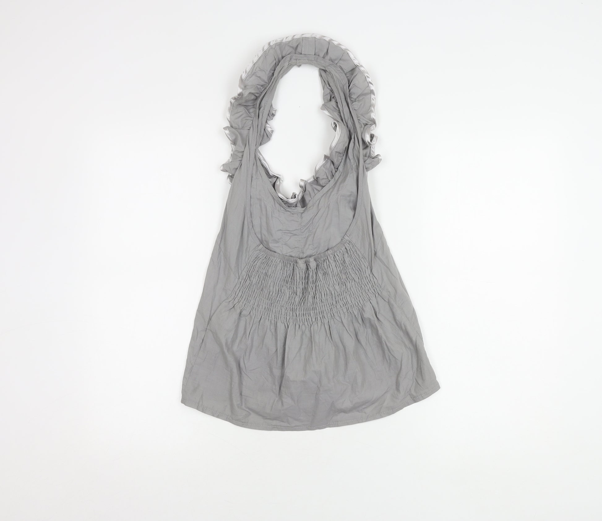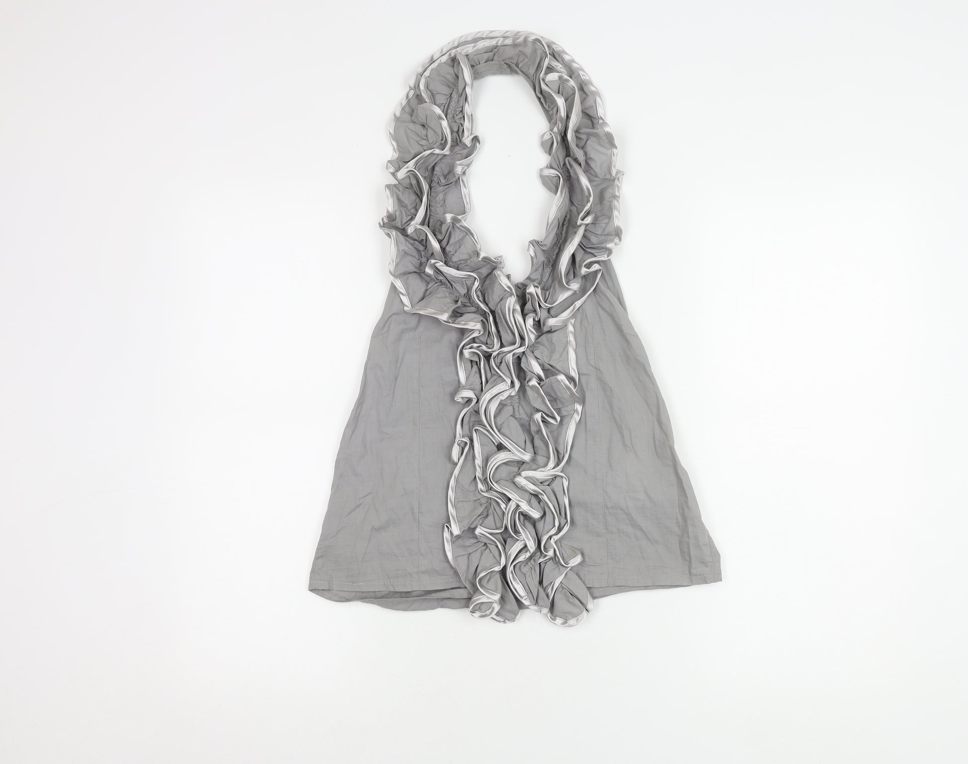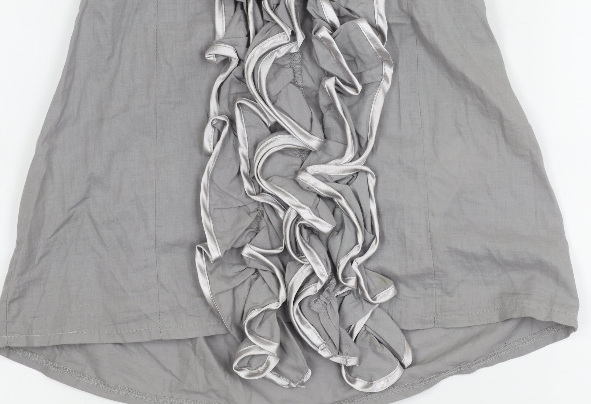 Women's Grey Ruffle Blouse Size 8 Sleeveless Cotton