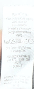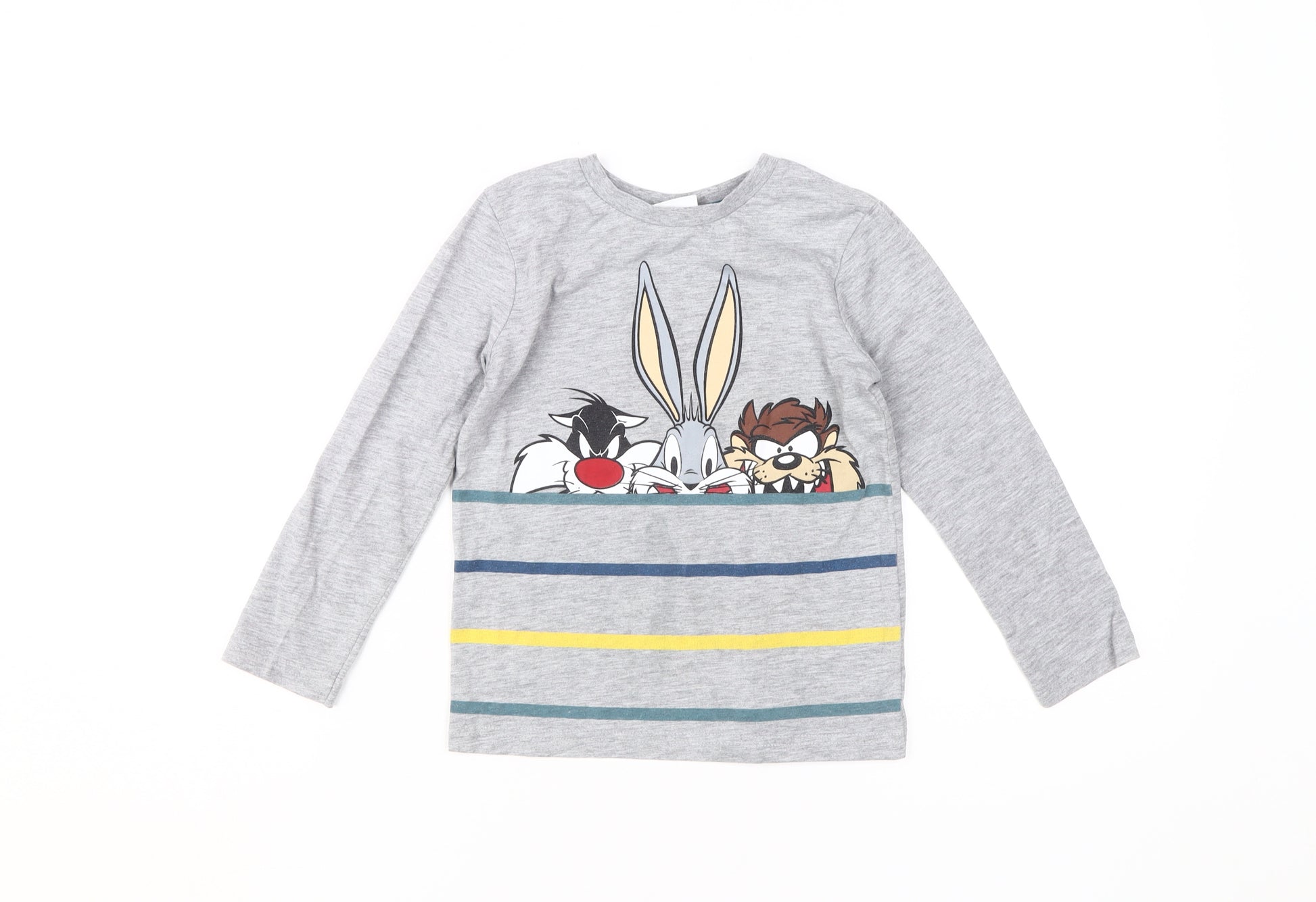 Brighten up your little one's wardrobe with this delightful Looney Tunes T-shirt, perfect for boys aged 4-5 years. Crafted with a soft jersey fabric, this pullover T-shirt features a lively graphic print of beloved Looney Tunes characters, making it a charming choice for casual outings. The stylish design showcases a crew neckline and long sleeves, ensuring a comfortable fit for everyday wear. Made from a quality blend of 58% cotton and 42% polyester, this T-shirt is both breathable and durable, offering easy machine wash care for busy parents. Its medium fabric wash and regular fit contribute to its versatile appeal, making it suitable for all seasons. This delightful grey T-shirt is accented with a colourful logo, adding a unique touch to its playful design. With its excellent condition, it appears as good as new, although original sales tags are not present. Given its graphic charm and lovely condition, it presents great value for money, priced attractively at just £10. Add a touch of fun to your child's casual wear collection with this charming Looney Tunes T-shirt, combining comfort, durability, and style. Ideal for any young fan of classic animated characters, it promises to be a favourite in their wardrobe.