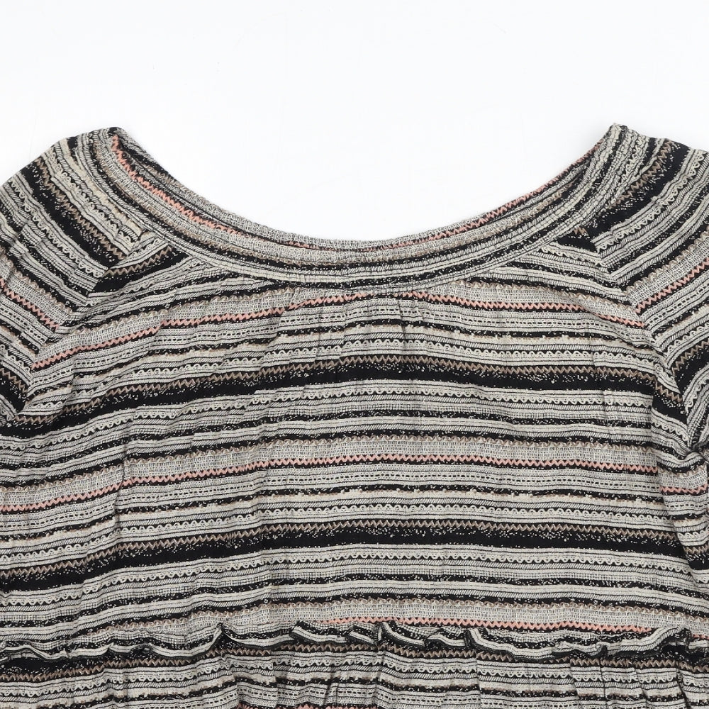 Womens Grey Striped Viscose Basic Blouse Size 16 Round Neck