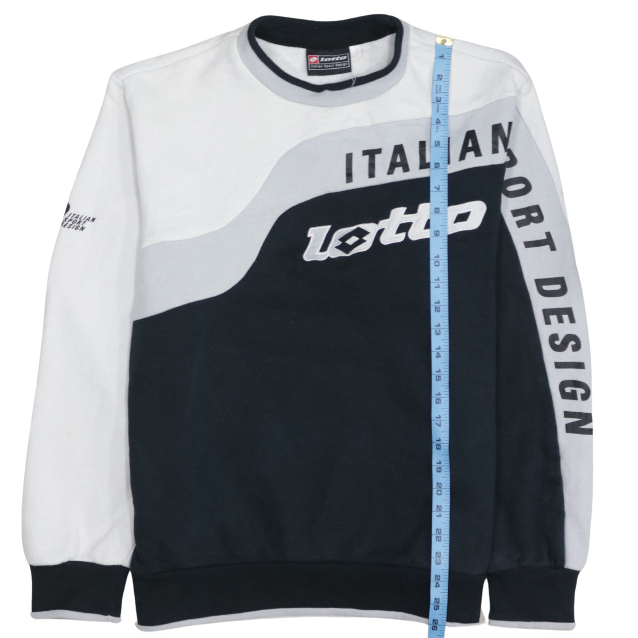 Men Black & White Italian Sport Design Graphic Pullover Sweatshirt L