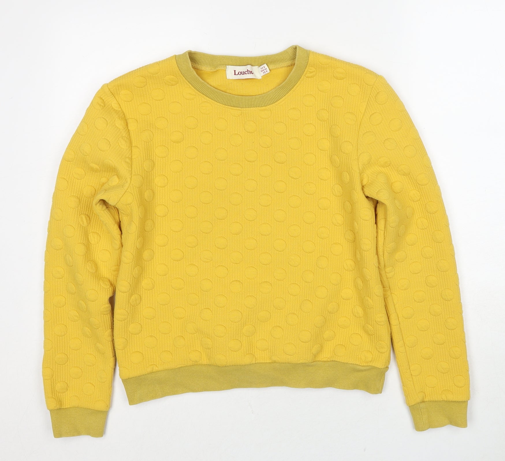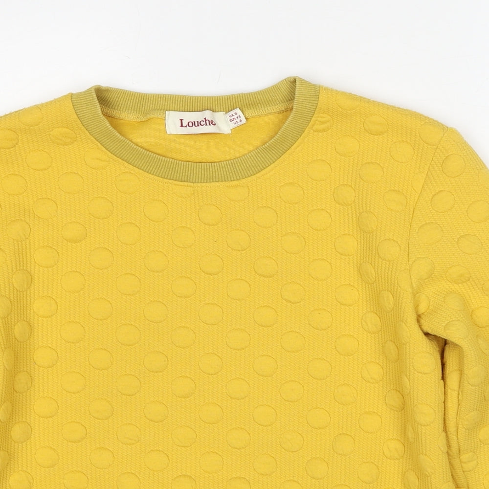 Womens Yellow Polka Dot Polyester Pullover Sweatshirt Size 8 Pullover