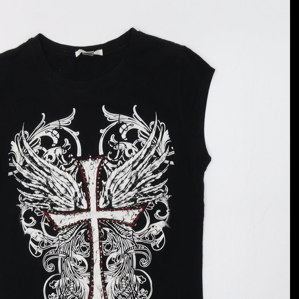 Womens Black Cotton Basic T-Shirt Size L Crew Neck