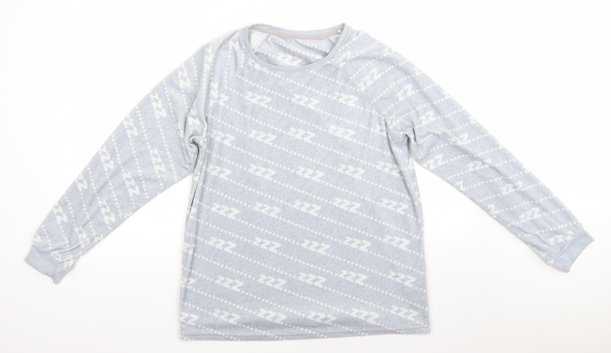 Womens Grey Solid Polyester Pyjama Top Size 10 - ZZZ... Light Grey with White print