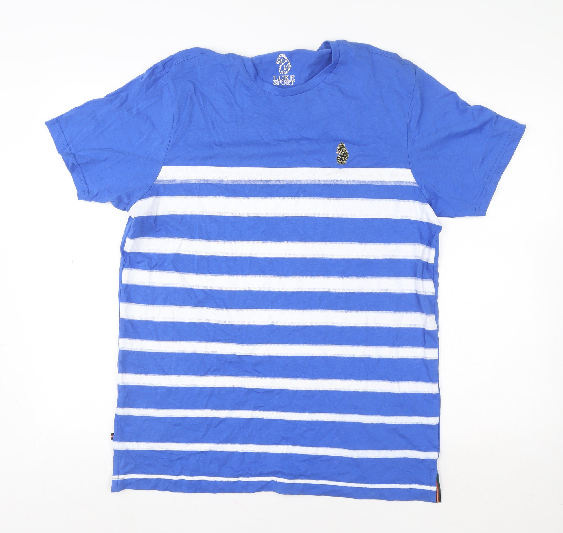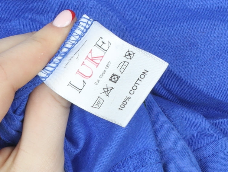 Elevate your casual wardrobe with this stylish Luke Sport men's T-shirt, designed to combine comfort and modern appeal. Crafted from premium 100% cotton, this short sleeve tee offers excellent breathability and a soft, smooth feel, making it perfect for everyday wear or relaxed weekend outings. The vibrant blue base is enhanced by crisp horizontal white stripes, delivering a timeless nautical-inspired look that never goes out of style. Featuring a crew neckline and regular fit, this T-shirt provides ease of movement and a flattering silhouette suitable for a wide range of body types. The iconic Luke Sport logo—a symbol of quality and British design—adds a distinctive finishing touch at the chest, reflecting the brand’s refined yet athletic character. The high-quality cotton material ensures both durability and comfort, making it ideal for warm weather or layering under a jacket through transitional seasons. This piece is machine washable for easy care and retains its shape and colour after repeated wear. Whether paired with jeans, shorts, or chinos, this versatile T-shirt promises effortless style for any casual occasion. Ideal for men who appreciate understated yet distinctive fashion, this Luke Sport striped T-shirt is a wardrobe essential that blends sporty charm with everyday practicality. It’s designed to keep you comfortable while maintaining a polished look throughout the day. A dependable choice for holidays, casual meet-ups, or laid-back evenings, the breathable jersey fabric ensures you stay cool and confident. In very good pre-owned condition with light natural creasing from storage, this smart tee offers excellent value and contemporary design from a trusted menswear brand.