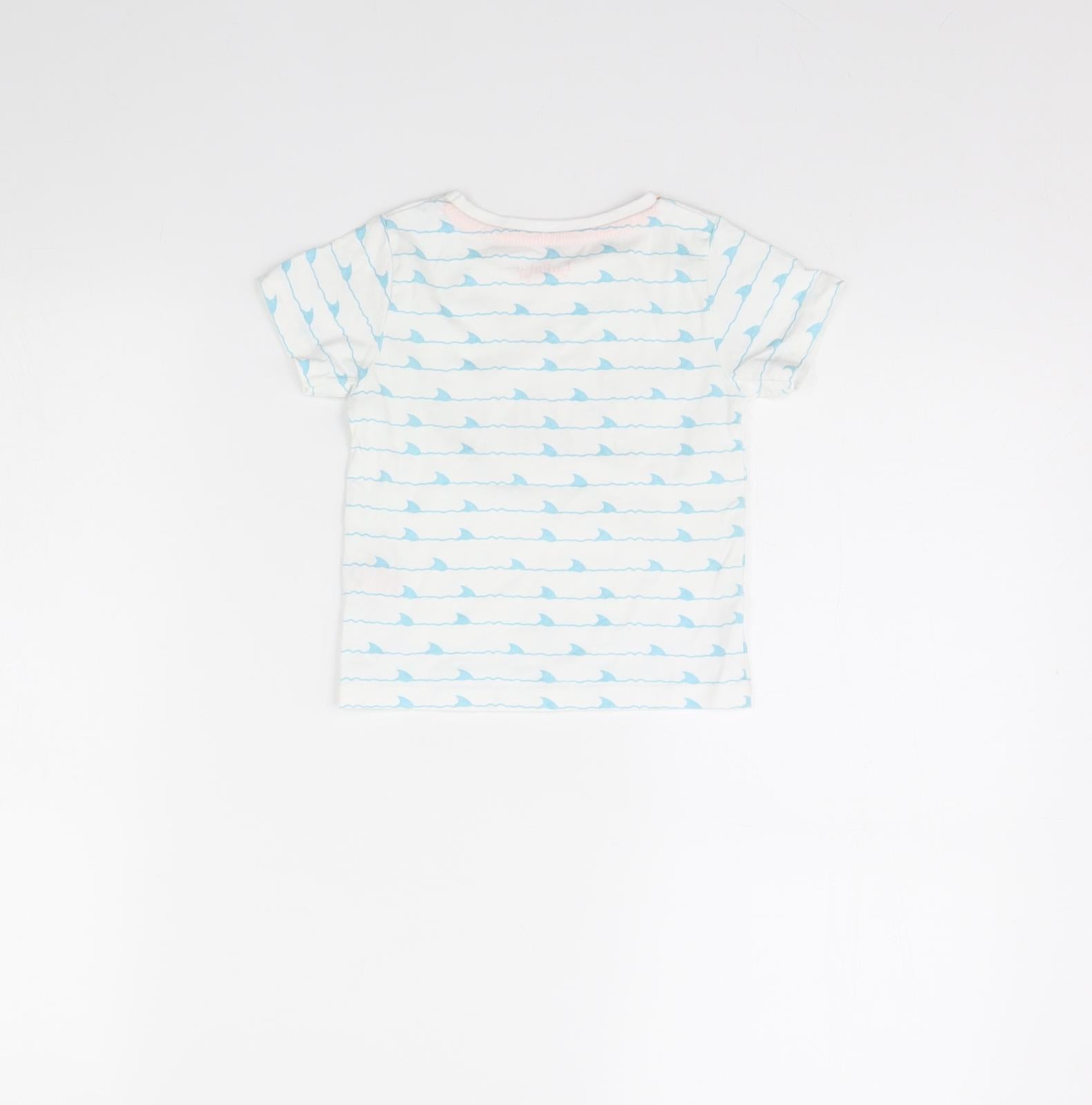Baby White Striped Basic T-Shirt Size 12 Months - Shark