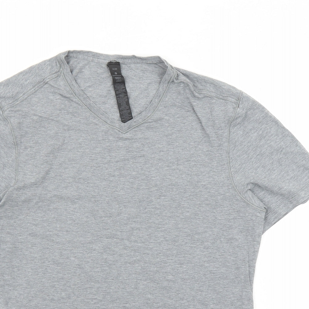 Womens Grey Cotton Basic T-Shirt Size M V-Neck