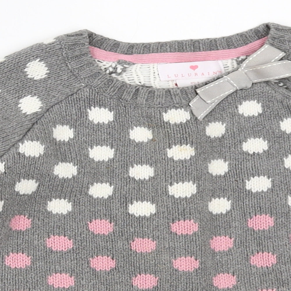 Girls Grey Polka Dot Pullover Jumper Size 4-5 Years