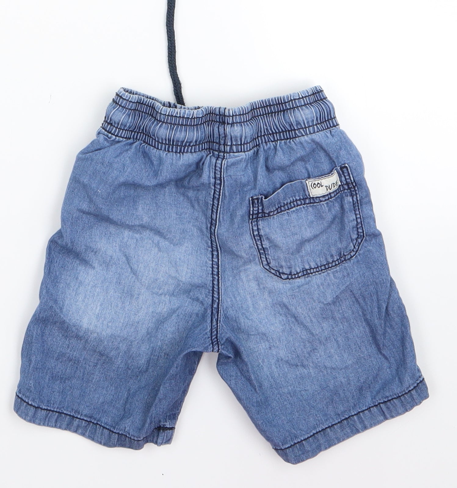 Next Boys Blue Star Print Denim Chino Shorts Size 2 Years Elastic Waist