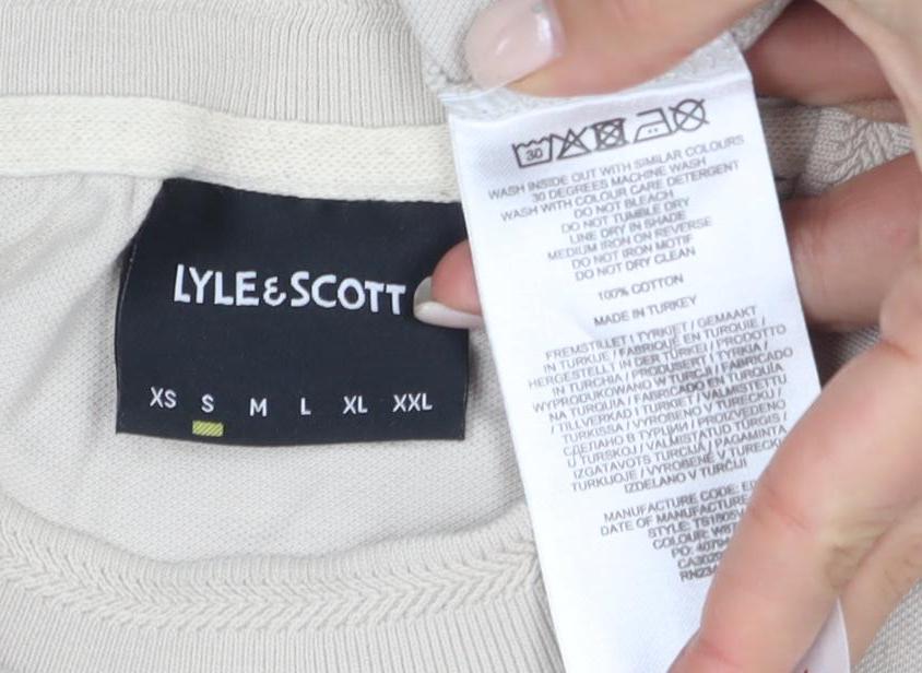 Elevate your casual wardrobe with this Lyle & Scott beige T-shirt, perfect for any occasion. Crafted from 100% cotton, this medium-sized T-shirt promises comfort and breathability, ideal for all-day wear. The solid beige colour adds a touch of sophistication, making it versatile enough to pair with any outfit. Featuring a classic crew neck and short sleeves, this T-shirt is a staple piece for any man's wardrobe. The iconic Lyle & Scott logo accentuates the chest, adding a stylish touch. Whether you're dressing up for a day out or keeping it casual for a laid-back afternoon, this T-shirt is your go-to choice. Enjoy the ease of machine washability, ensuring you look great with minimal effort. Experience the quality and style that Lyle & Scott is known for, and make this beige T-shirt a key component of your everyday attire. With its excellent condition and timeless style, it's more than just a T-shirt; it's a part of your lifestyle.