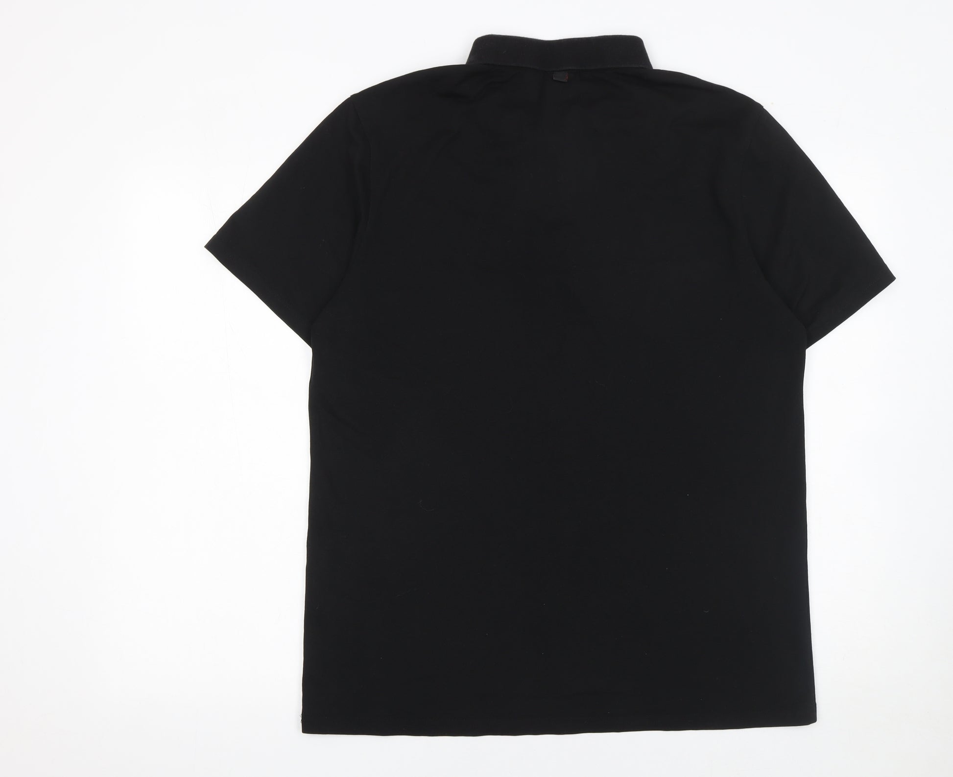 Men's Black Polo Shirt Size L Regular Fit Cotton Blend