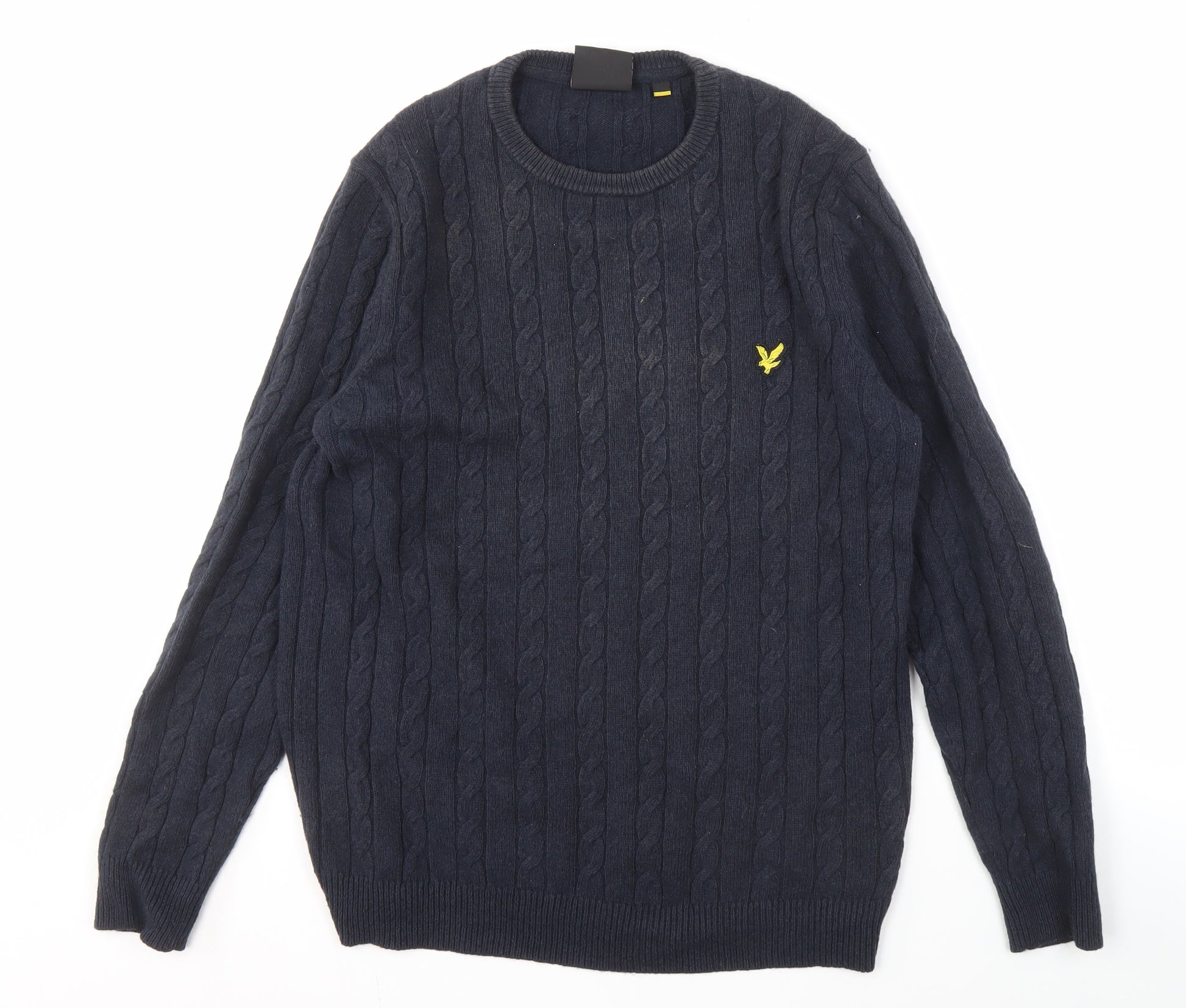 Elevate your wardrobe with this classic Lyle & Scott men's blue jumper, perfect for the autumn and winter seasons. This cable-knit pullover offers a blend of sophistication and comfort, making it an essential piece for casual occasions. Expertly crafted from soft cotton and warm wool, it promises both luxury and durability that’ll last for years. The jumper features a crew neck design and long sleeves, ensuring a comfortable fit for regular size types. The subtle logo accent adds a touch of brand heritage, celebrating Lyle & Scott’s rich history in crafting premium knitwear.Ideal for pairing with your favourite jeans or chinos, this sweater captures effortless style while ensuring versatility in your everyday wardrobe. Its deep blue colour offers a timeless appeal that can easily complement other items in your collection. Whether you’re heading out for a casual meetup or a relaxed evening, this jumper makes a reliable choice. Easy to care for with machine washable fabric, it suits the busy yet style-conscious man. The condition is excellent, showing no visible signs of wear, making it a worthy addition to any wardrobe.Designed for comfort and ease, the jumper’s knit fabric type provides all-day wearability. The elegant cable-knit style adds an extra layer of texture and depth, making it an attractive option for layering. Secure yours now at a great price, ensuring you stay warm and stylish this winter season.