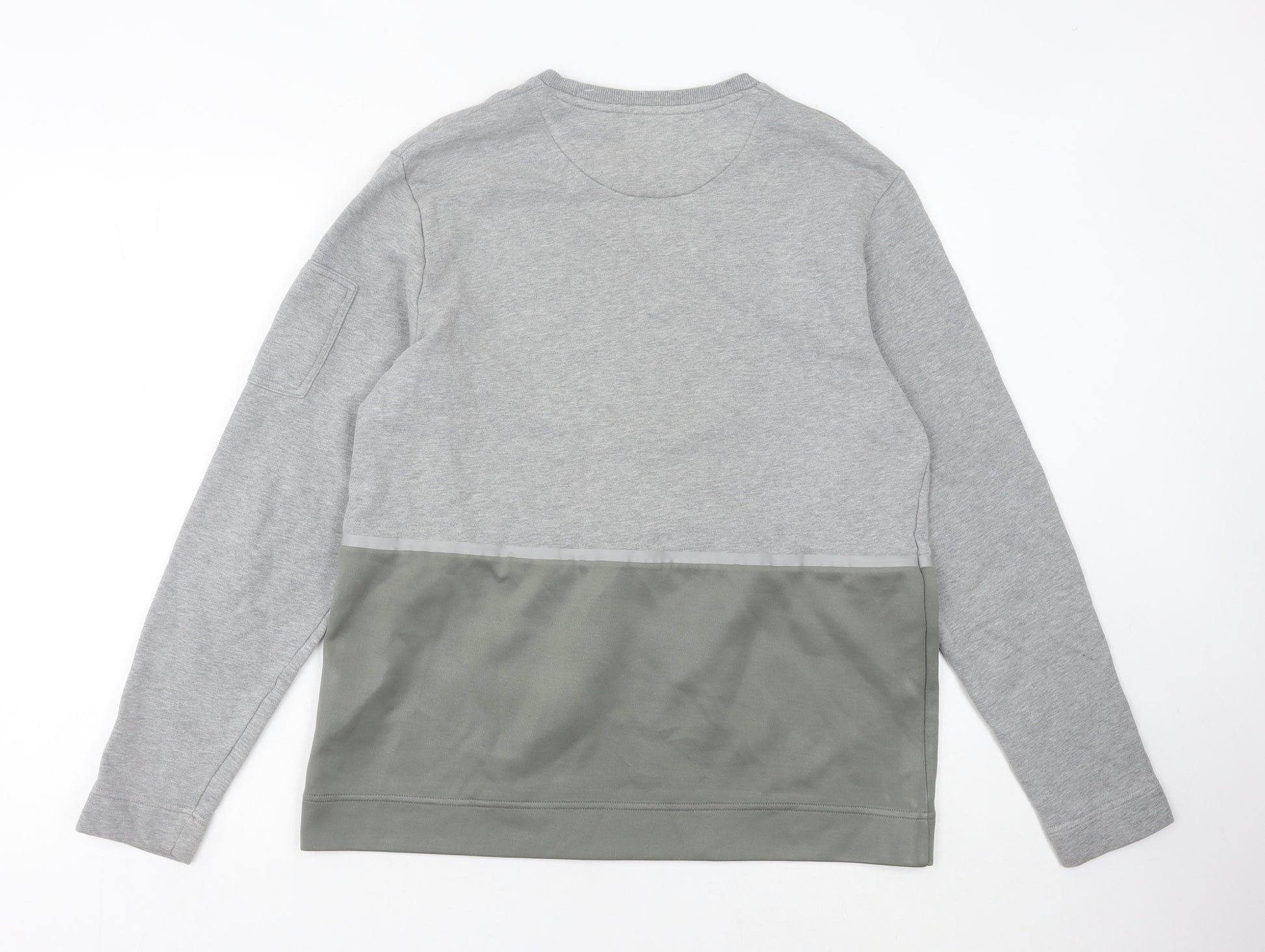 Elevate your casual wardrobe with this stylish Lyle & Scott Men's Sweatshirt in an elegant grey tone. Crafted from soft knit fabric, this pullover offers the perfect blend of comfort and fashion, ensuring you're both cosy and on-trend. The sweatshirt features a regular fit that suits everyday wear and is designed to be worn across all seasons, making it an incredibly versatile addition to any outfit.This XL size garment is made from premium materials, with the main shell consisting of 100% cotton for breathability, while the contrast panel blends 58% polyester and 42% cotton, adding a unique touch to the overall design. A subtle brand logo accent on the sleeve not only adds a dash of sophistication but also embodies the quality and authenticity that Lyle & Scott is renowned for.Designed with convenience in mind, this sweatshirt is machine washable, allowing for easy care without compromising on quality. Its long sleeves and classic crew neckline enhance its timeless style, ensuring you'll reach for it time and again. The solid grey colour makes it an ideal match with jeans or casual trousers, suitable for a laid-back outing or casual gatherings.With minimal signs of wear, this sweatshirt is in excellent condition and promises to be a favourite in your collection. The understated design ensures it remains a fashionable choice year after year, making it a valuable piece for those looking to balance style and comfort effortlessly.