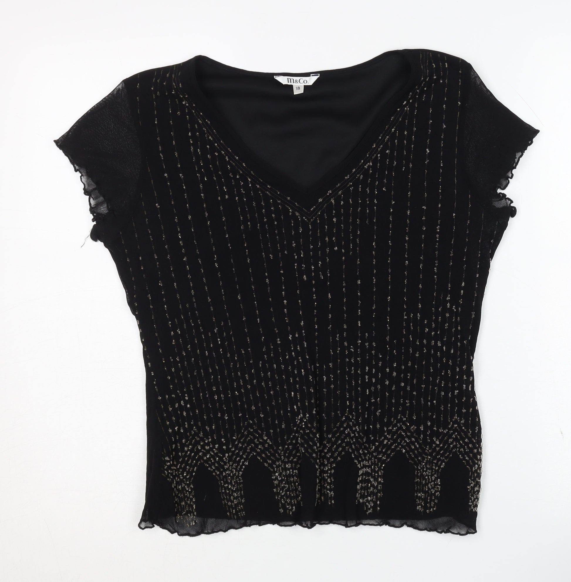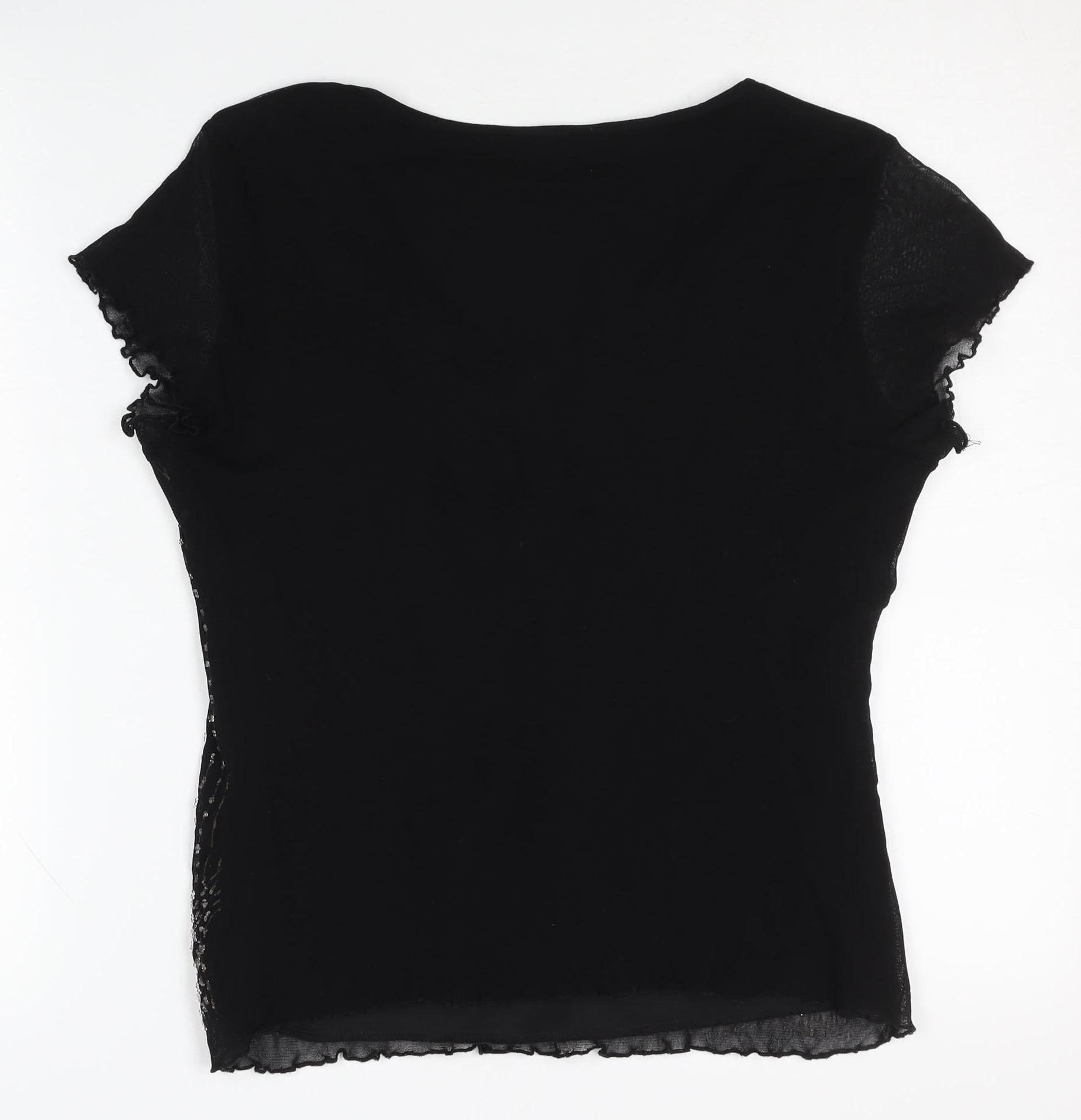 FatFace Women's Black Linen V-Neck Short Sleeve Blouse Size 18
