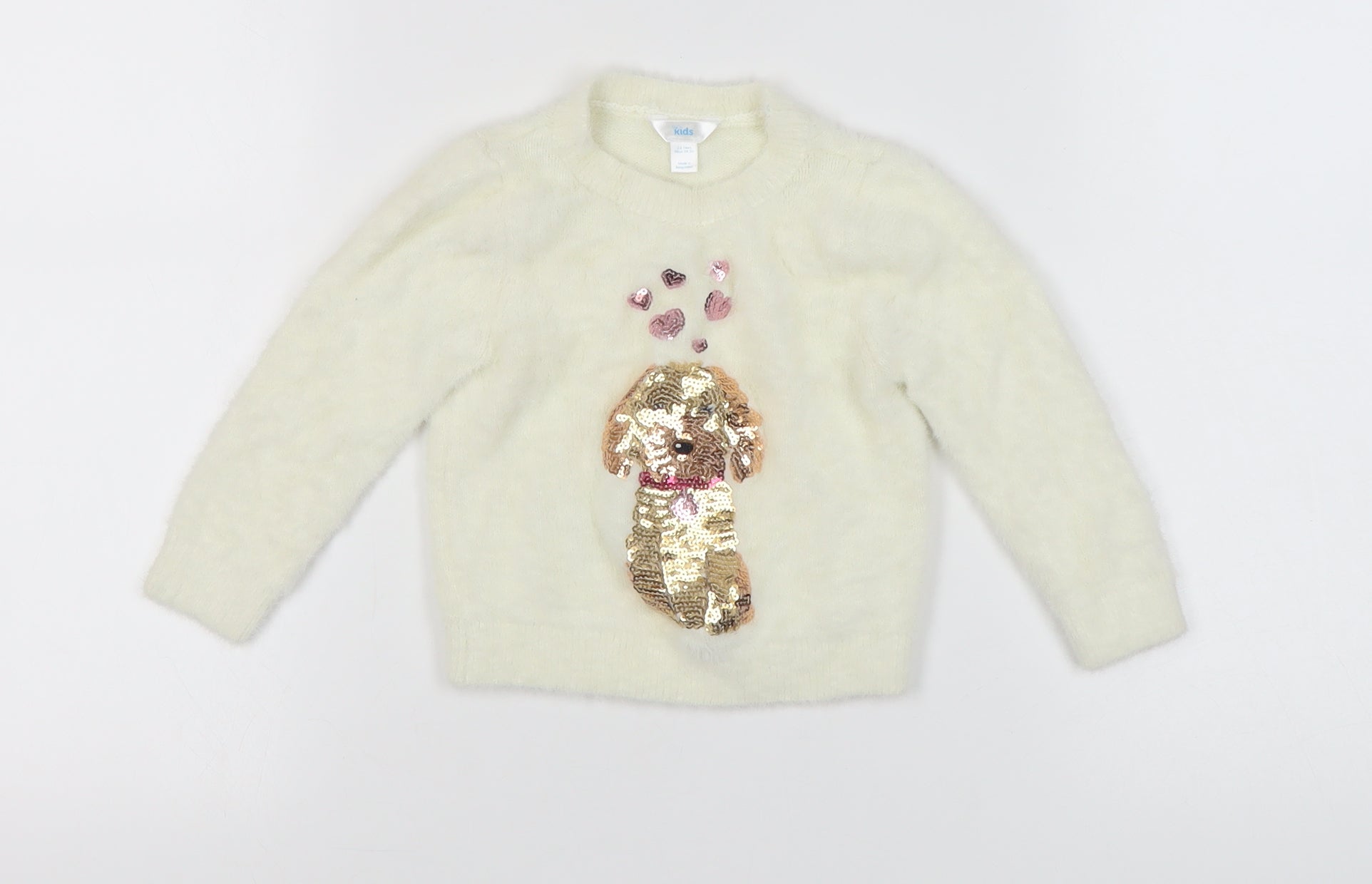 Girls Ivory Sequin Dog Pullover Jumper 2-3 Years