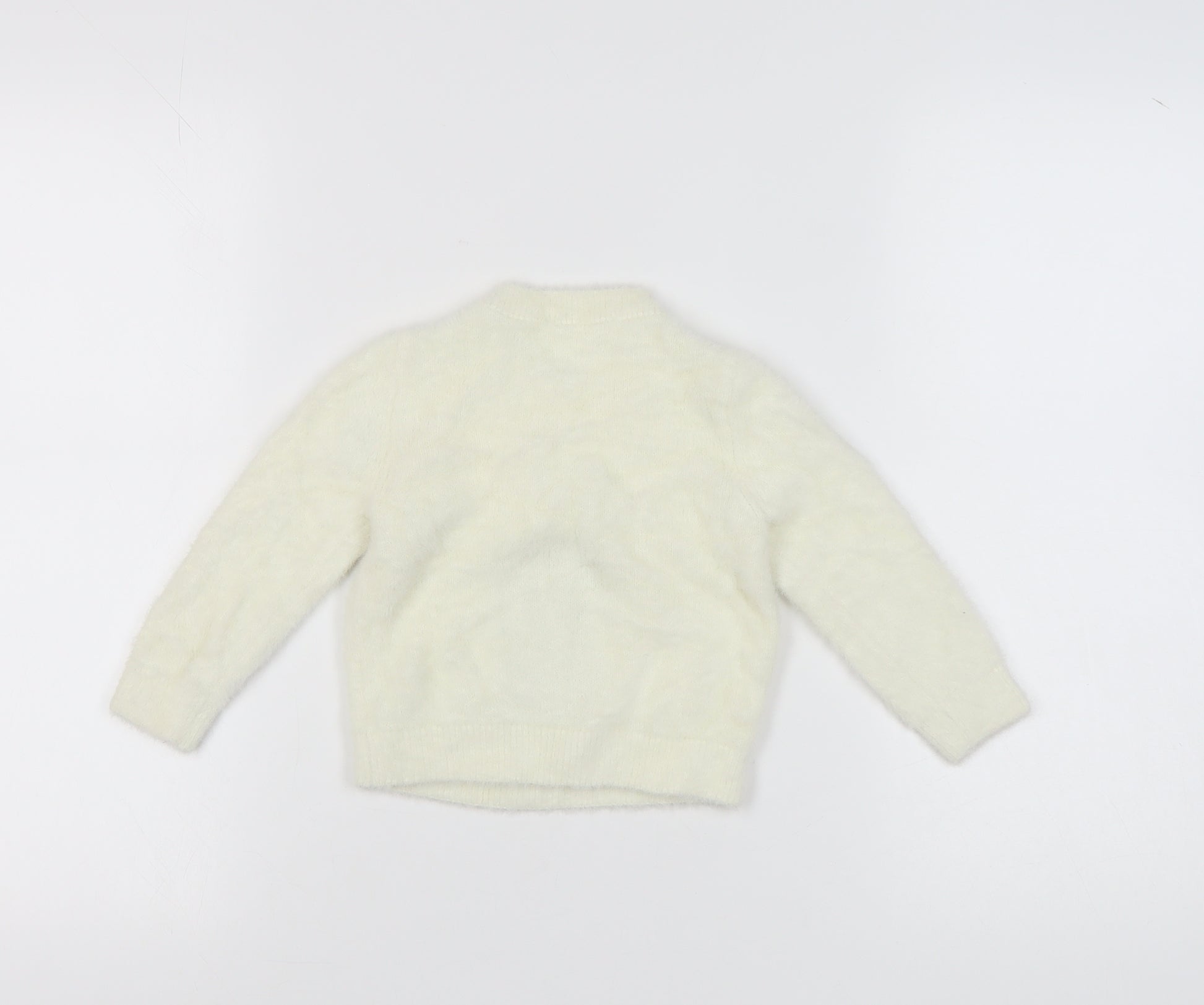 Nutmeg Girls Ivory Fuzzy Pullover Jumper 2-3 Years Pink Flamingo Winter Knit