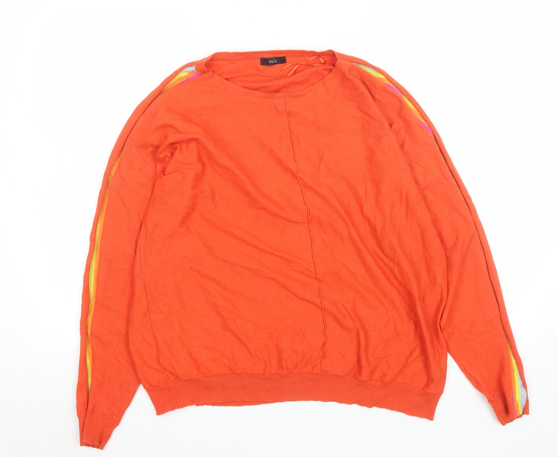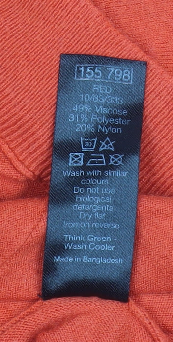 This vibrant red pullover jumper from M&Co offers the perfect mix of comfort, warmth, and everyday style. Crafted from a soft and breathable blend of 49% viscose, 31% polyester, and 20% nylon, it provides a smooth and lightweight texture that feels gentle against the skin while retaining its shape throughout the day. Designed for women, this long sleeve jumper is ideal for layering or wearing on its own, making it a versatile addition to your wardrobe all year round. The sleek round neckline and relaxed regular fit ensure easy wear and a flattering look for any body shape. Its stretchy knit construction delivers both ease of movement and lasting comfort, perfect for casual settings, weekend outings, or cosy evenings in. The jumper’s clean design is enhanced by subtle rainbow-hued stripe accents that trace down the sleeves, adding a fun and colourful twist to its classic silhouette. Ideal for autumn, winter, and cooler spring days, this piece pairs effortlessly with jeans, skirts, or trousers for a laid-back yet polished look. Machine washable for convenience, it’s an easy-care essential that retains both its colour and feel wash after wash. In very good used condition with only minimal signs of gentle wear, it remains in excellent wearable shape with no visible damage or stains. Whether you’re refreshing your casual wardrobe or looking for a pop of cheerful colour, this M&Co jumper is a stylish, comfortable choice that brings both charm and practicality to your everyday look — an easy go-to piece for women who appreciate simple yet expressive fashion.