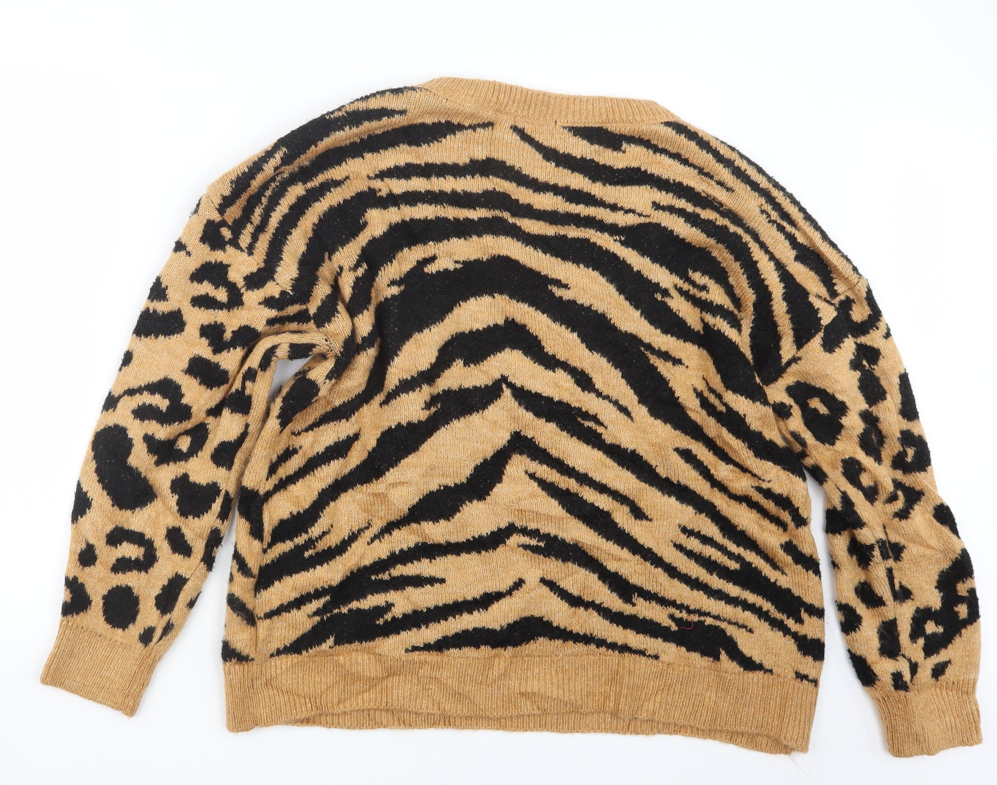 Womens Beige Animal Print Knit Pullover Jumper Size L