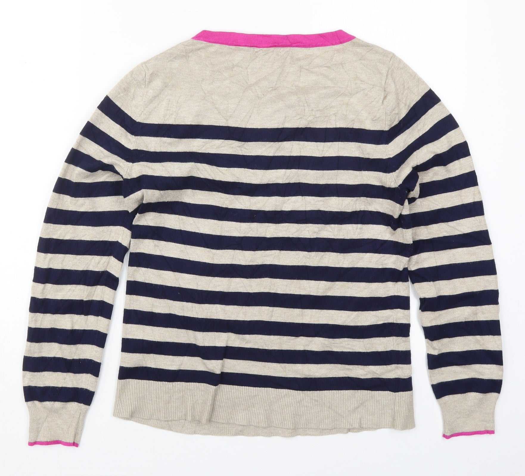 Womens Beige Round Neck Striped Viscose Pullover Jumper Size 14