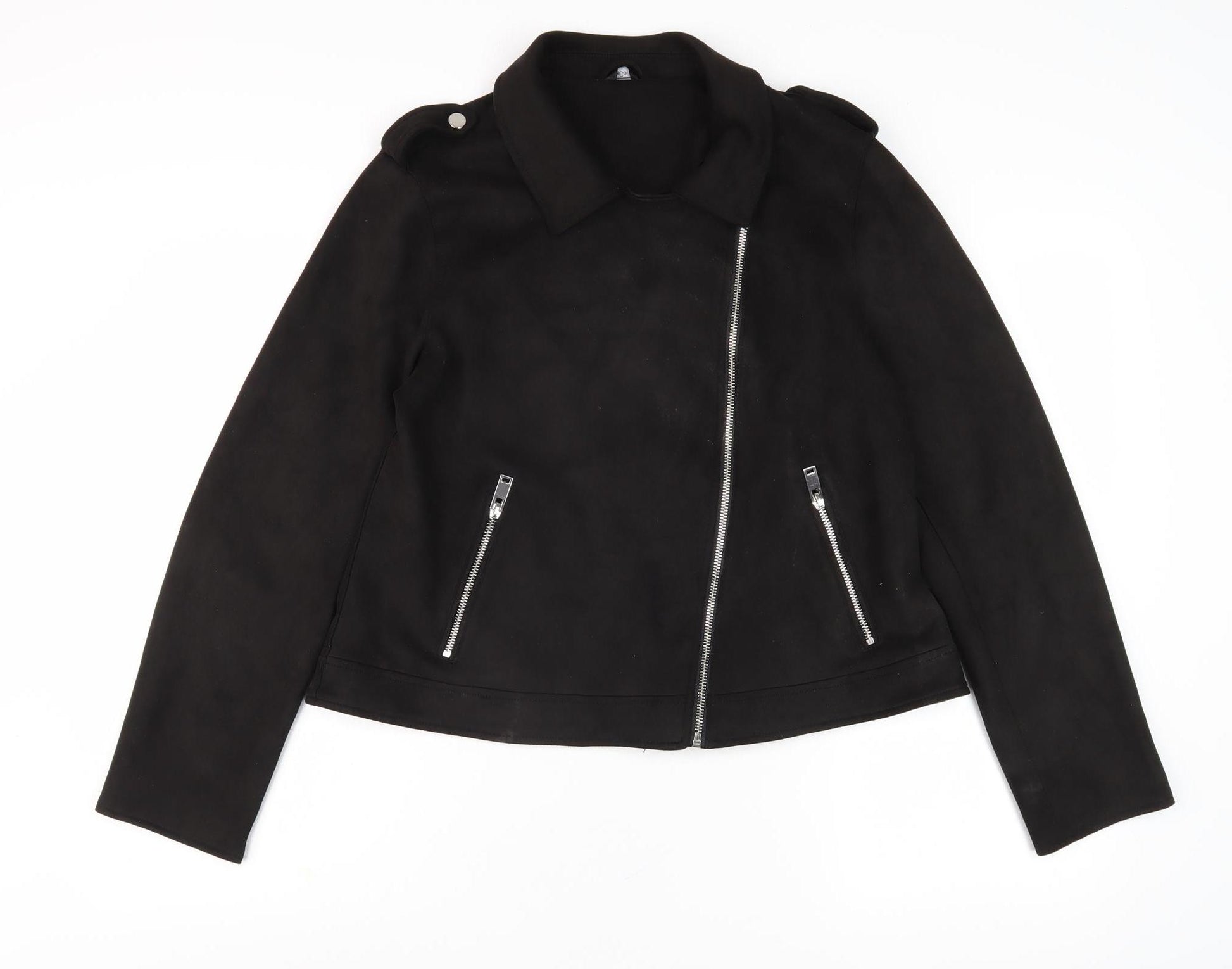 Women's Black Motorcycle Jacket - Size 14, Casual Classic