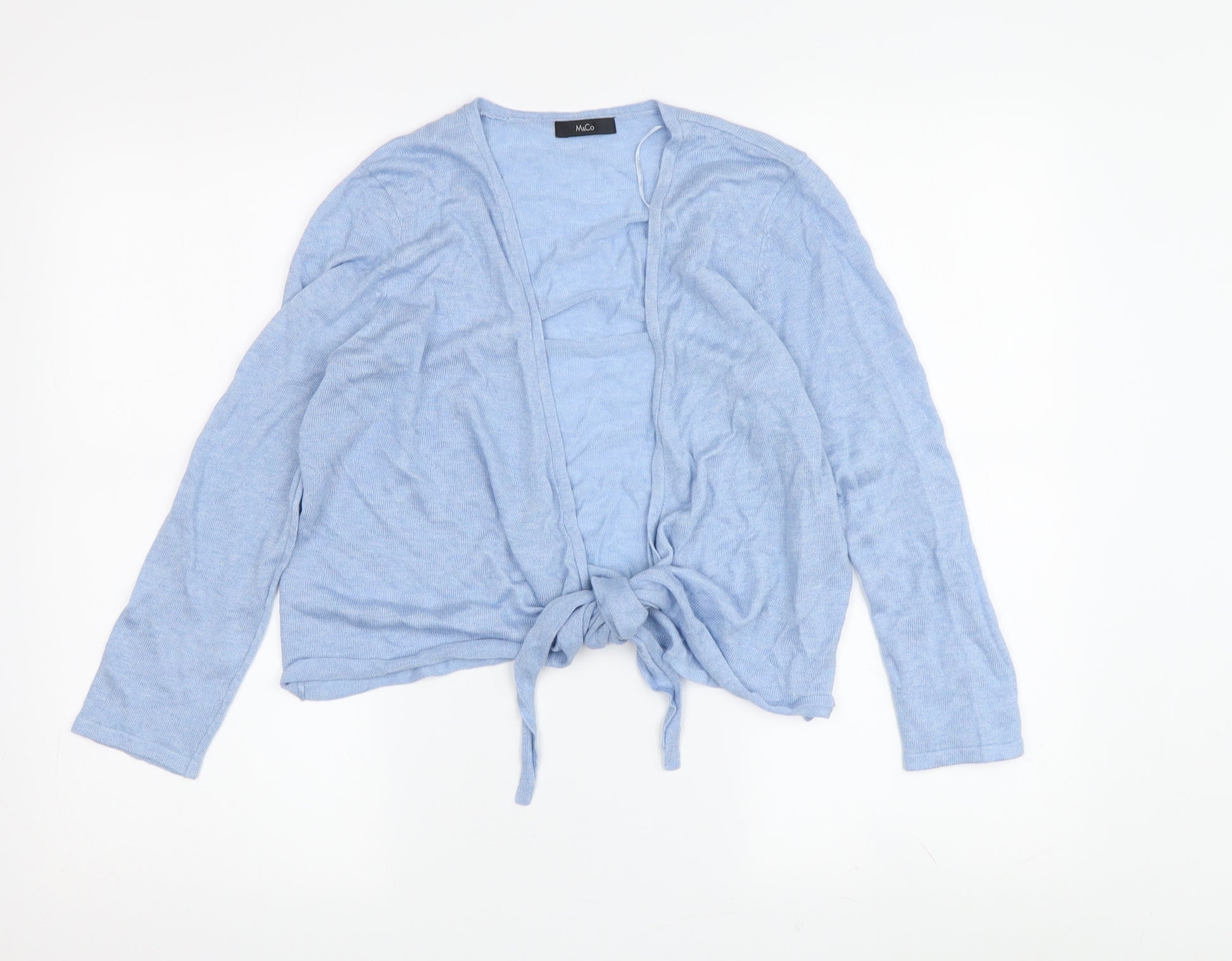 Discover casual elegance with this captivating M&Co Women's Blue Cardigan, crafted to enhance your everyday wardrobe. Perfectly sized for a regular fit, this Size 12 cardigan exudes sophistication with its rich blue hue, providing a versatile addition to your collection. Made from a cosy blend of cotton, viscose, and nylon, it promises comfort and breathability throughout all seasons. The long sleeves and open front design make it a laid-back yet stylish choice for any casual occasion. This cardigan showcases a sleek, no pattern knit, which effortlessly pairs with both jeans for a relaxed look, or a skirt for a more dressed-up ensemble. Whether you're heading out for a casual meet-up or staying home, it’s designed to cater to your style needs while delivering the comfort you desire. Despite light wear, it remains in excellent condition with no noticeable flaws, ensuring your purchase is one you'll cherish for seasons to come. Machine washable for your convenience, enjoy effortless garment care without compromising on style. Embrace the charm and versatility of this M&Co cardigan, the perfect casual essential to effortlessly complete your outfits.