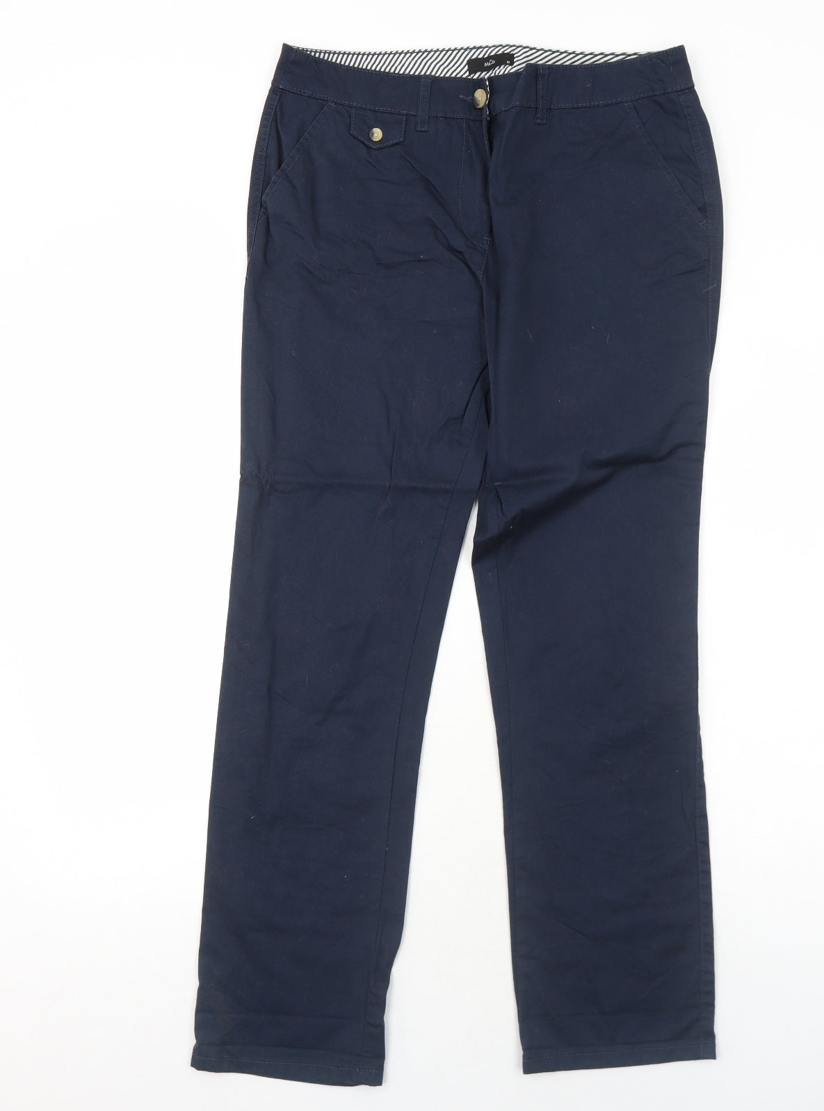 Womens Blue Cotton Chino Trousers Size 10 Regular Zip