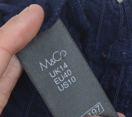 This charming M&Co women's blouse in a delightful blue shade is an irresistible addition to any wardrobe. Crafted from 100% cotton, it ensures both comfort and breathability, making it ideal for spring and summer wear. The blouse is designed in a classic regular fit, offering a relaxed yet stylish silhouette suited for casual outings. Featuring elegant 3/4 balloon sleeves, it adds a touch of sophistication to your ensemble. The embroidered floral accents on the sleeves add a delightful touch of femininity and charm, ensuring you stand out with effortless elegance. Its round neckline offers a timeless design that pairs seamlessly with various accessories and outfits. Perfect for casual occasions, this blouse is a versatile piece that transitions smoothly from casual weekdays to more relaxed weekends. Easy to care for, it is machine washable, promising durability and low maintenance. Despite its excellent condition, please note that it comes without the original tags. A wonderful piece for those who appreciate classic style, this blouse is sure to become a staple in your wardrobe.