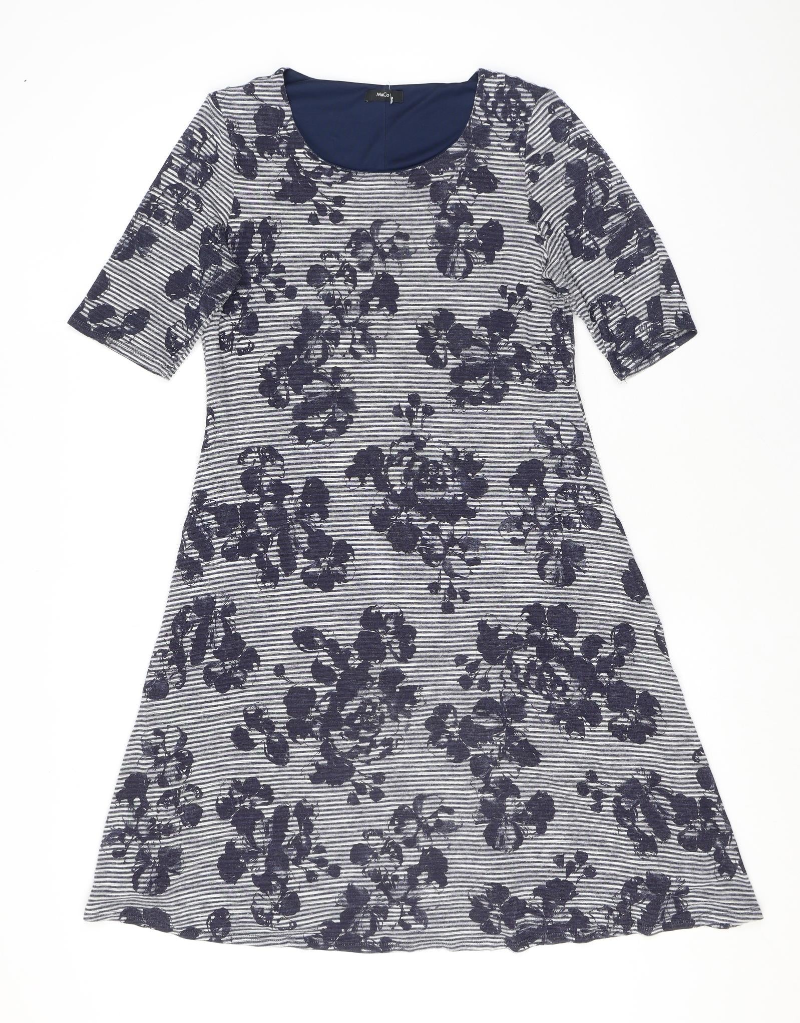 Womens Blue Floral Viscose A-Line Size 14 Round Neck Pullover