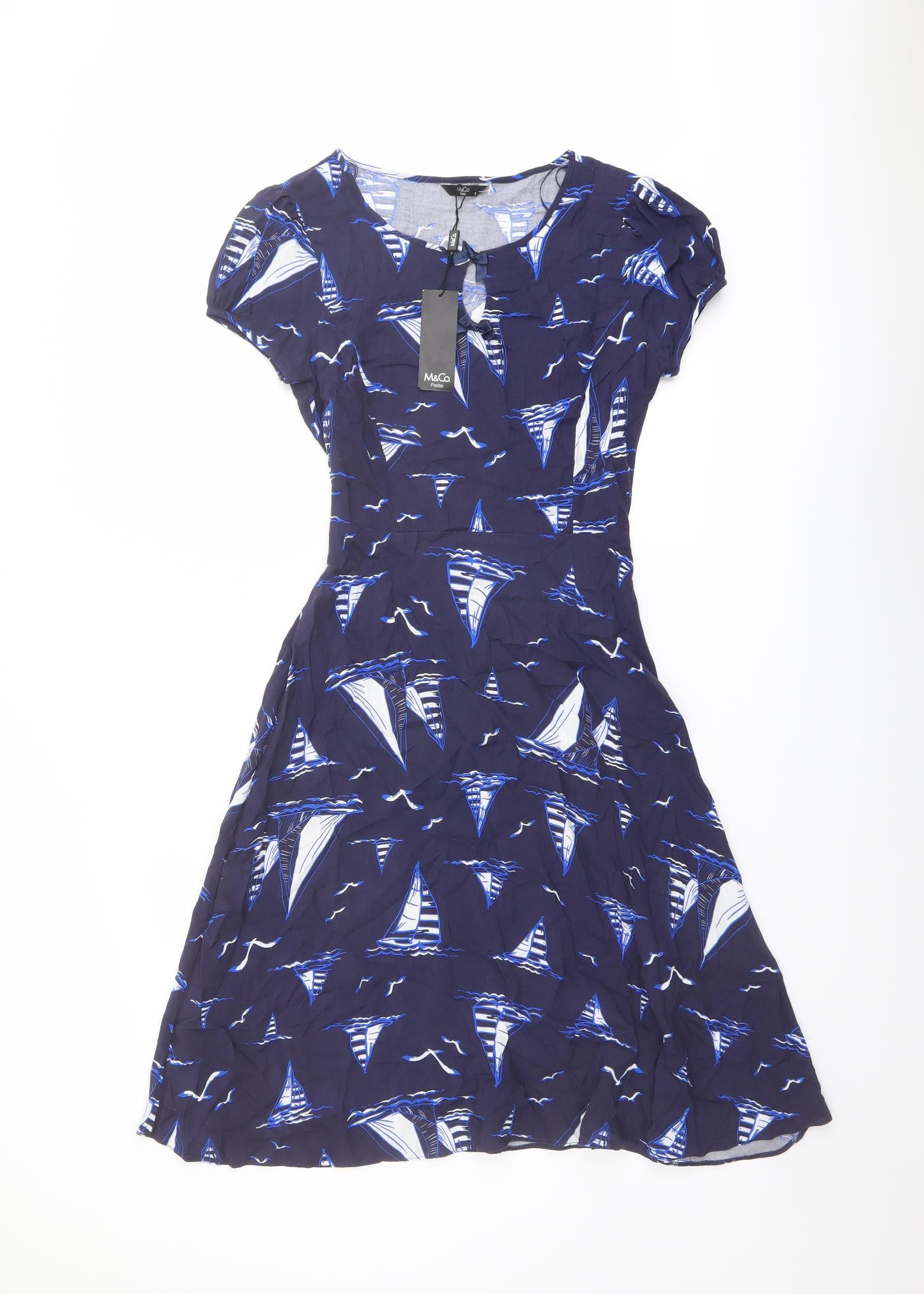 Womens Blue Geometric Viscose Trapeze & Swing Size 8 Round Neck Pullover - Boat pattern
