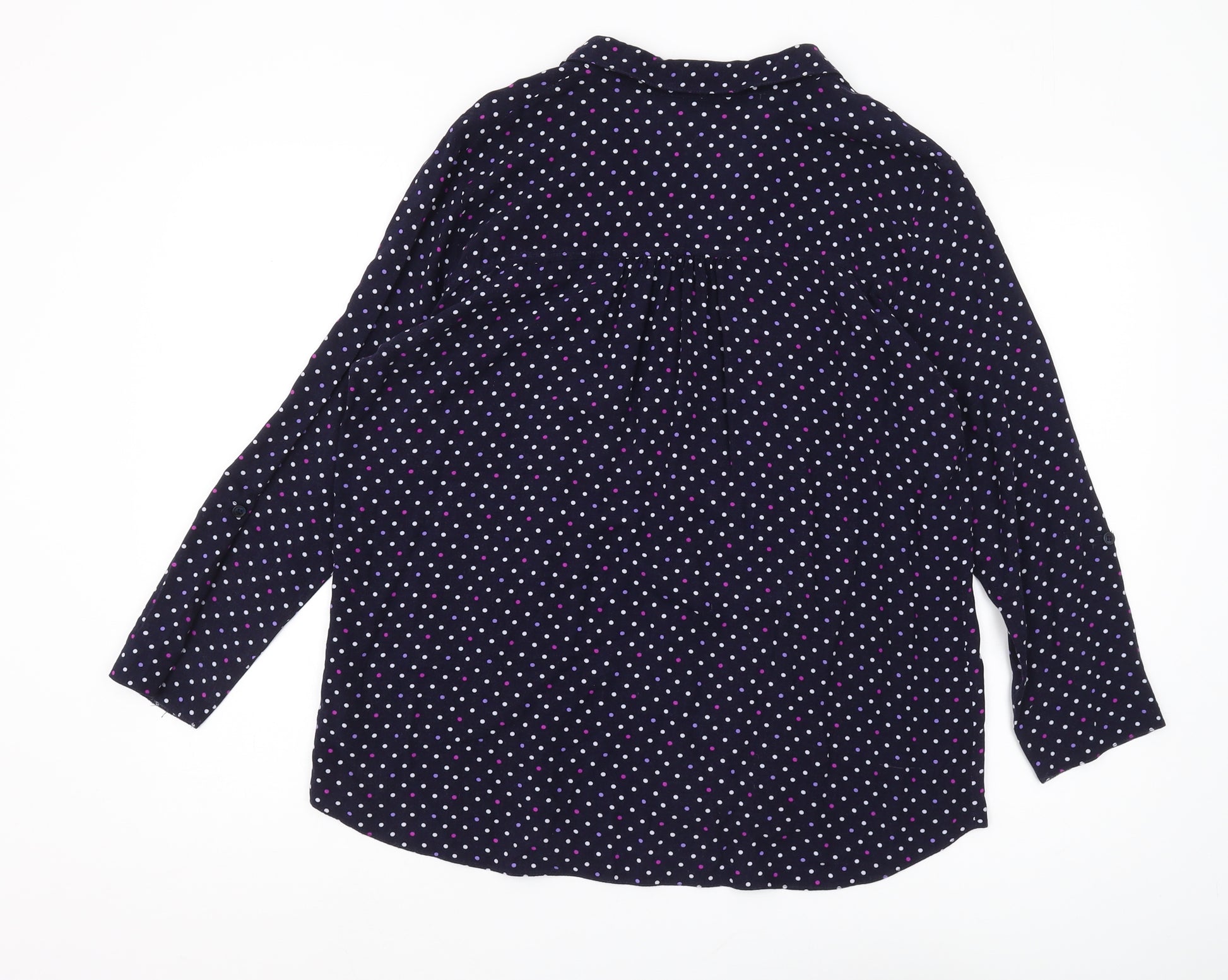 Women's Blue Polka Dot Button-Up Tunic, Size 16 Petites
